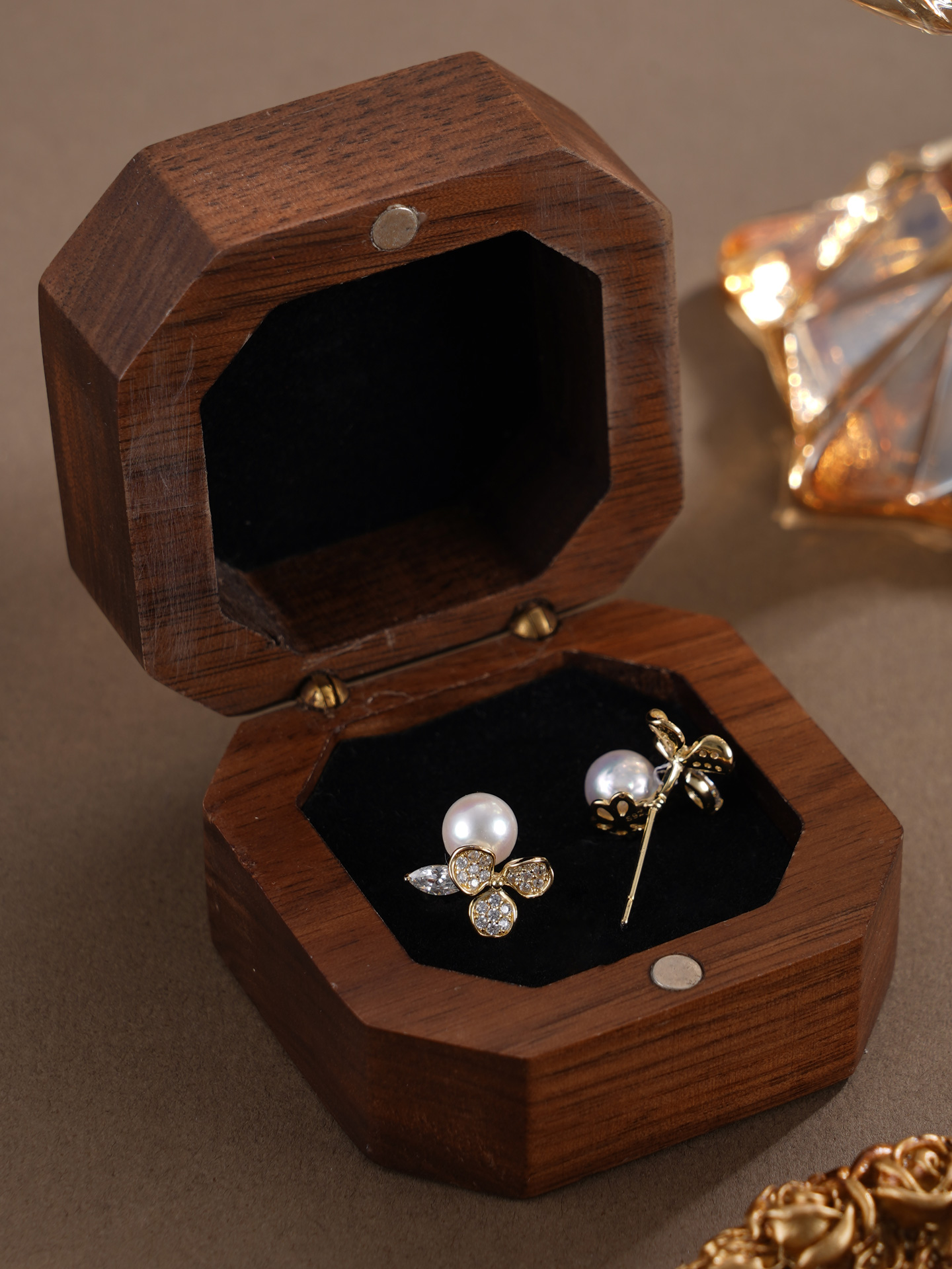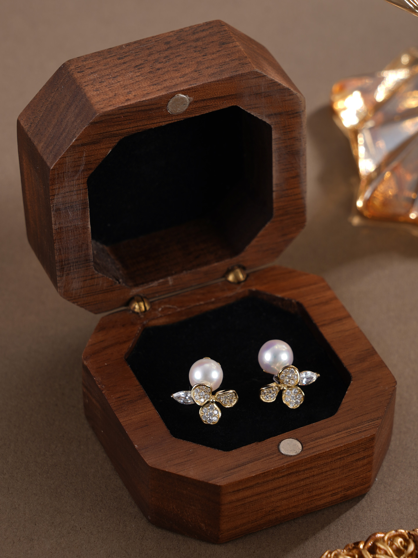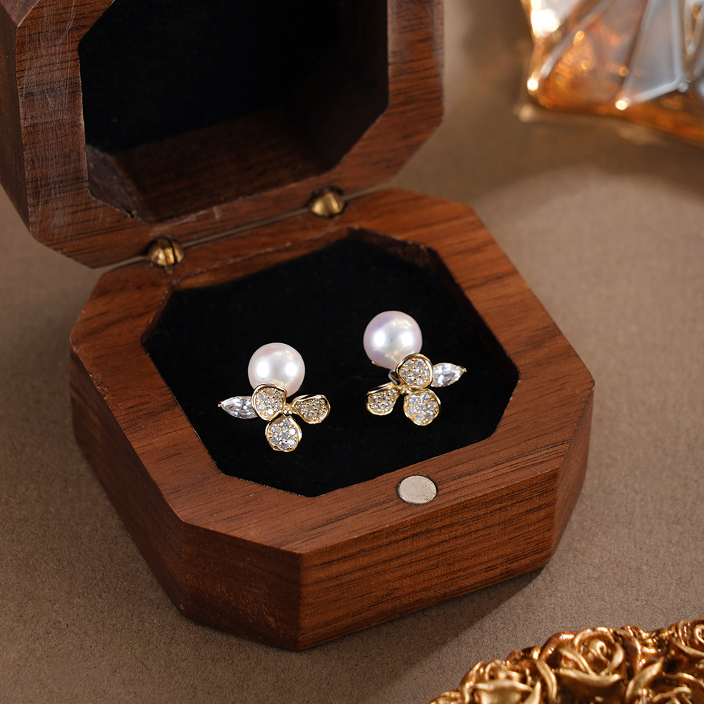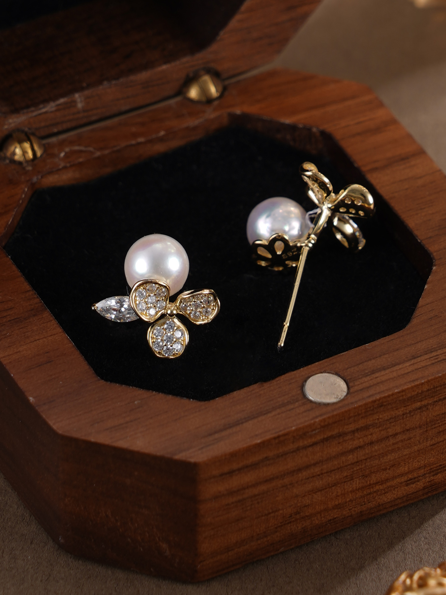 子佩集【三叶曦光】银S925珍珠惜王妃耳钉【XXED013】6mm珠镀金三叶草2601