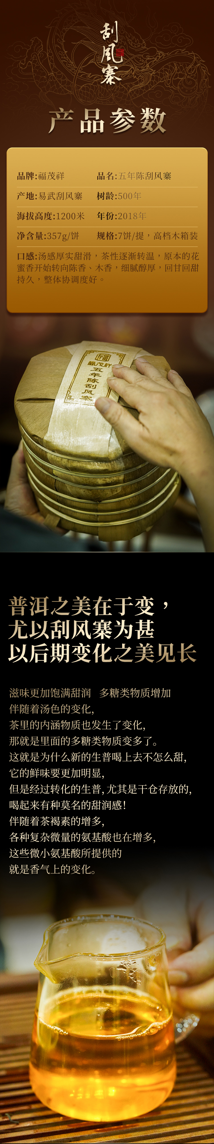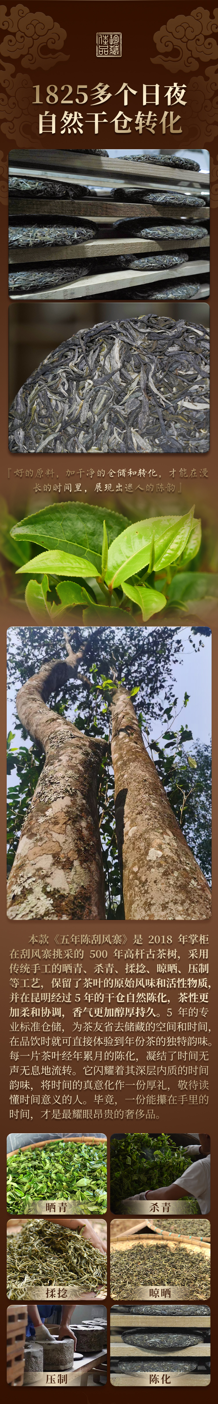 【五年陈刮风寨】纯干仓自存 高杆纯古树 2018年云南普洱茶易武刮风寨古500高杆纯料生茶357g饼茶