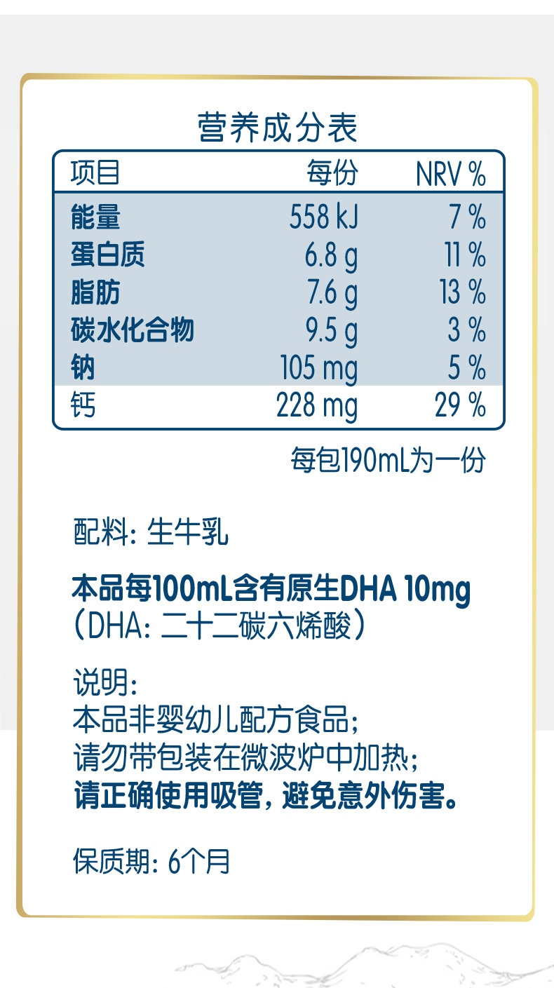 未来星双原生纯牛奶全脂灭菌乳利乐苗条装190ml×12包(加大外箱) 8月零包