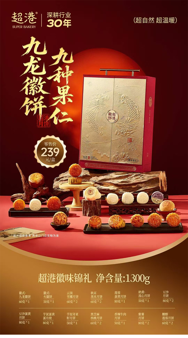 超港 徽味锦礼1300g 中秋月饼礼盒 20饼14味 徽式糕点 送礼优选 72小时发货