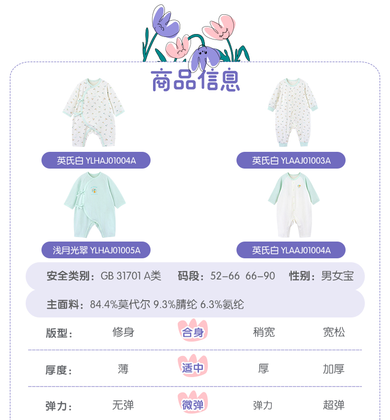 英氏婴儿连体衣宝宝爬服哈衣2021新款YLHAJ01004A01 01003 01005