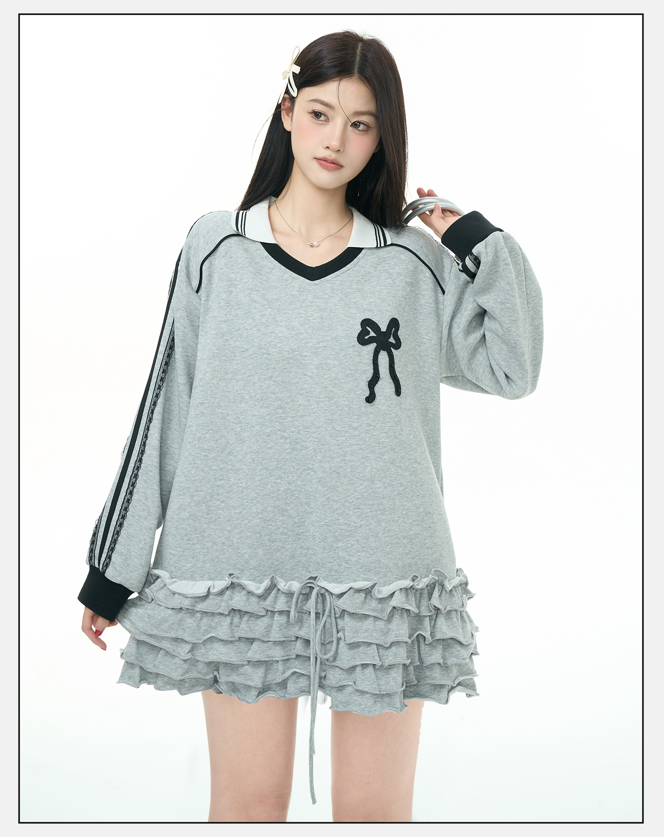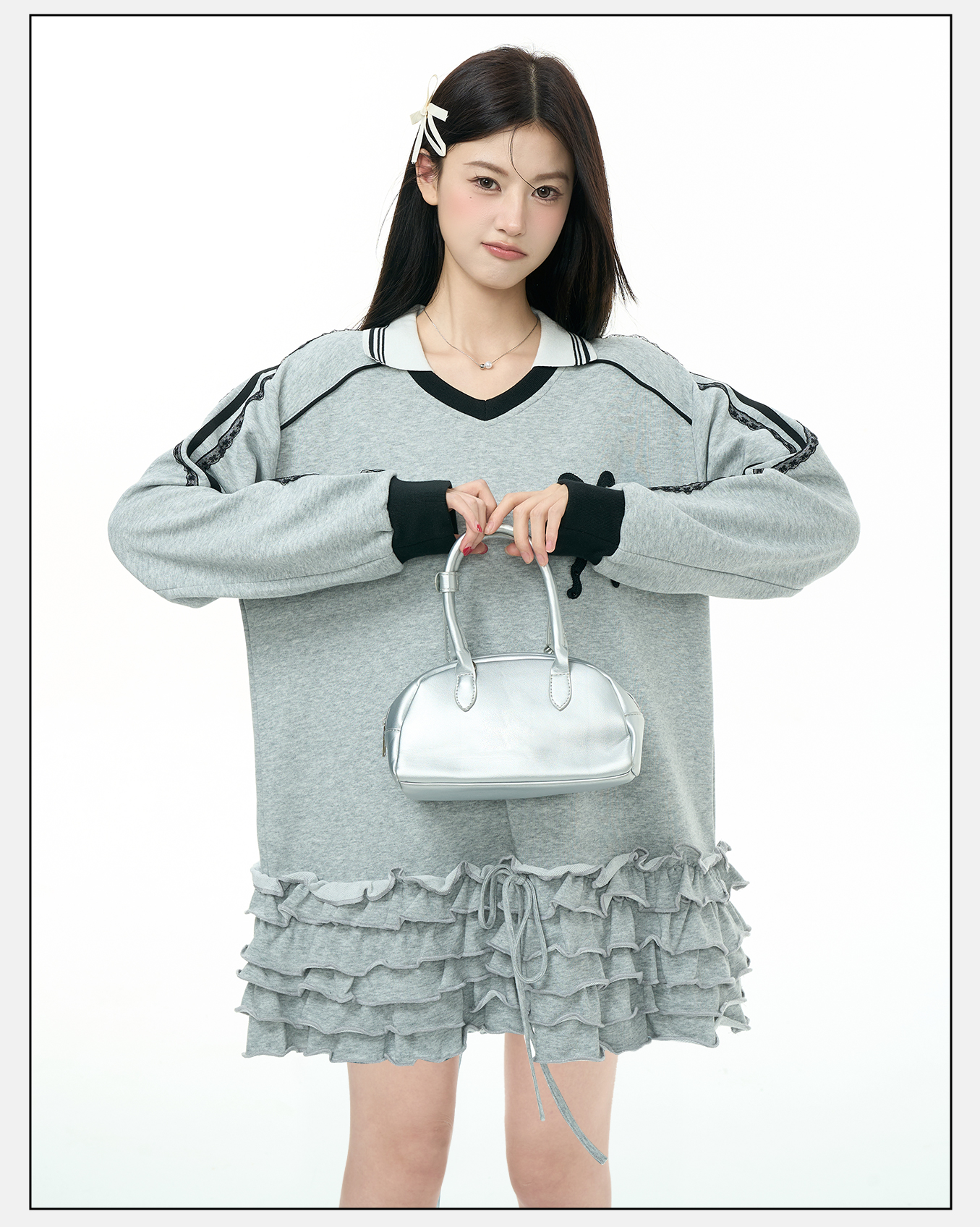 P&X设计师女装2025秋季长袖拼接V领针织连衣短裙825317143 灰色