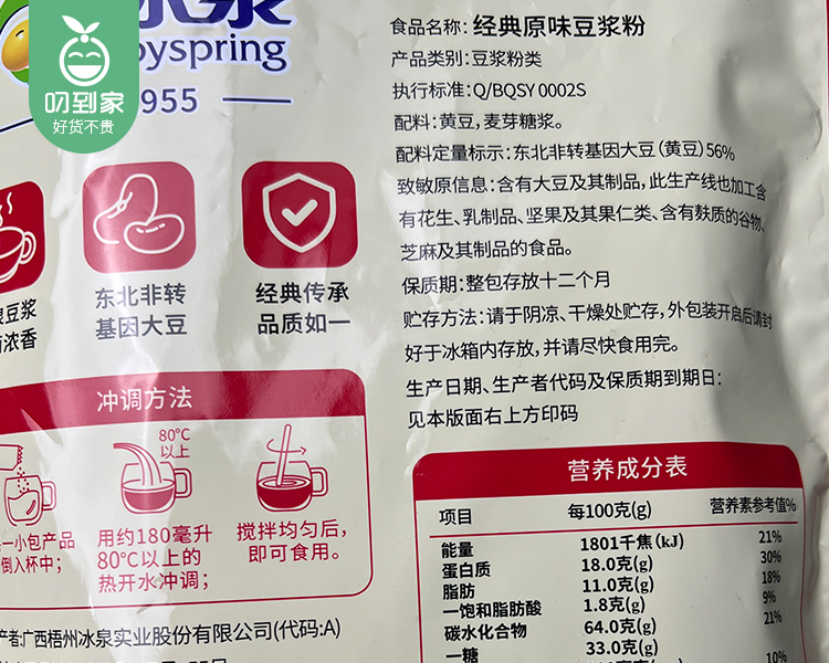 【到手2包】冰泉经典原味豆浆粉/1份(210g*2包,每包7小包)生产日期:26年3月