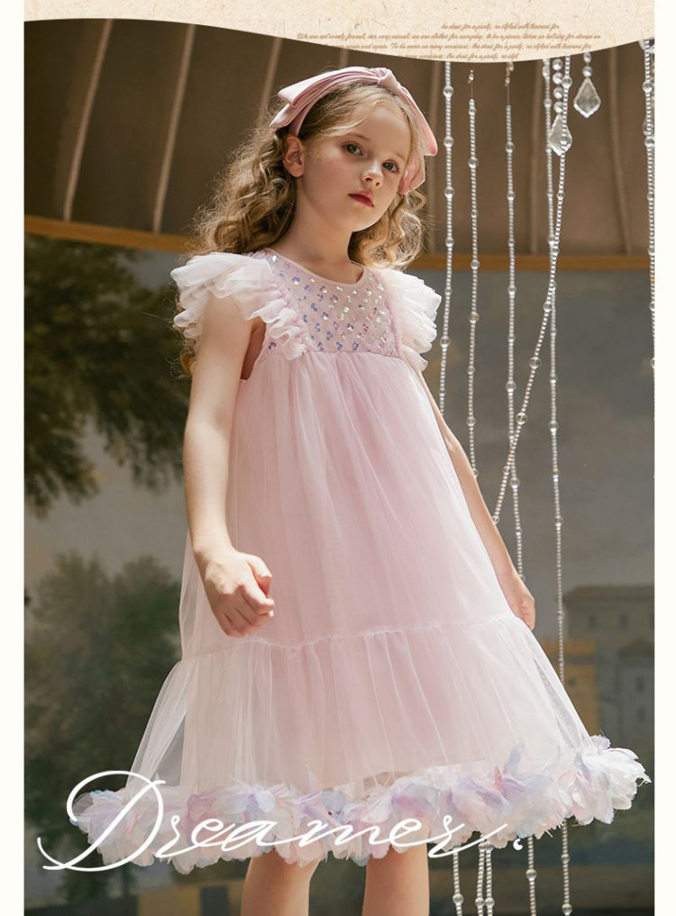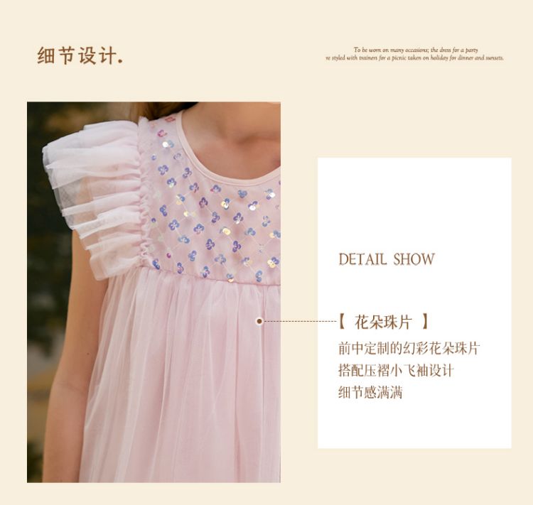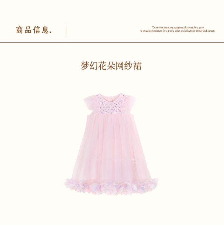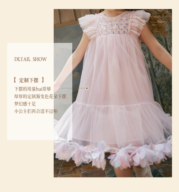 【云优选】LittleNaive女童连衣裙无袖花朵网纱飞袖童装公主裙儿童纱裙