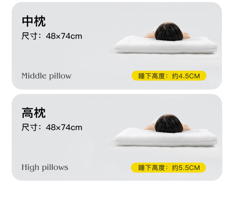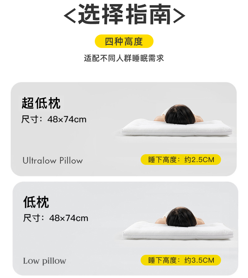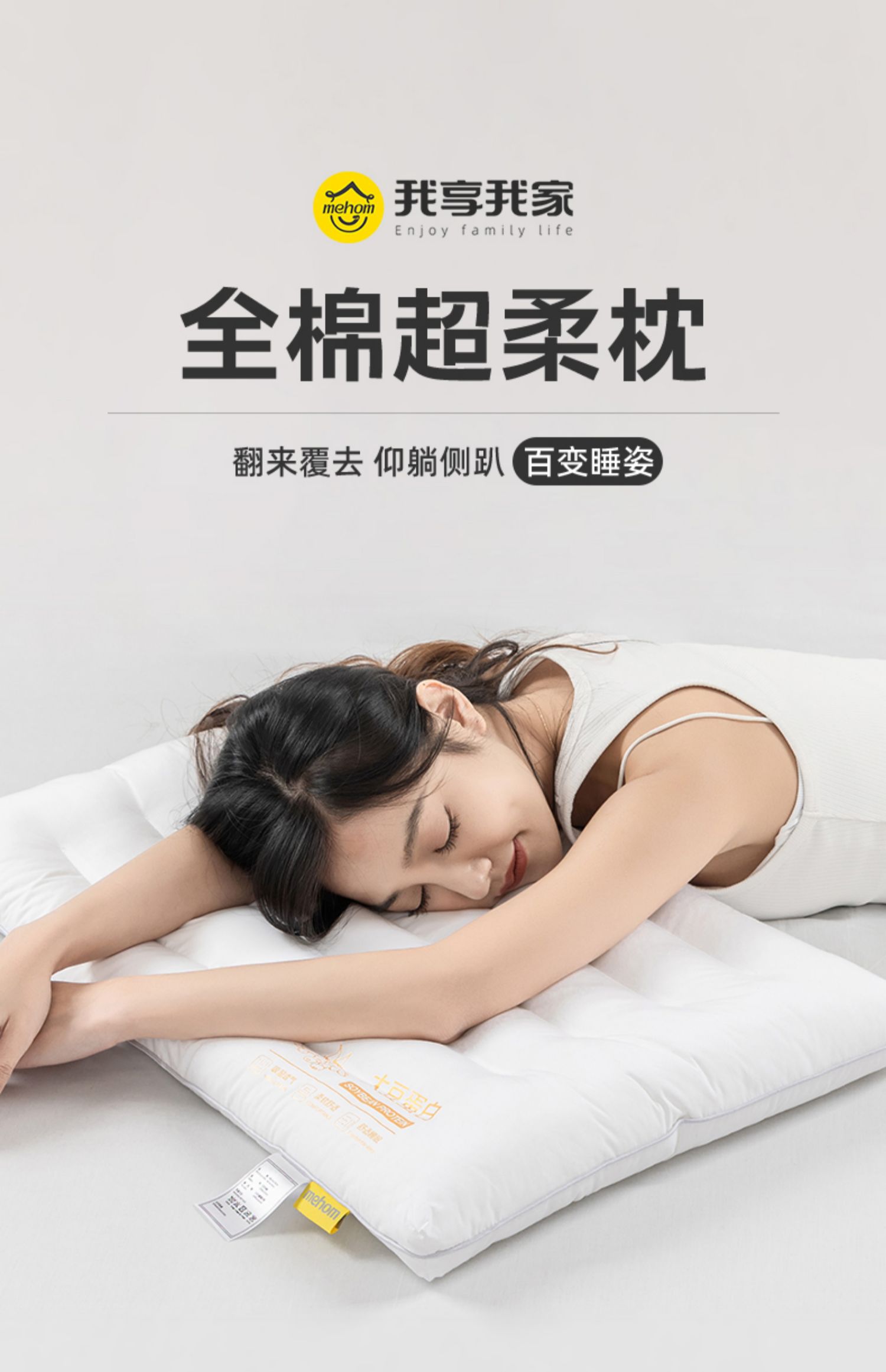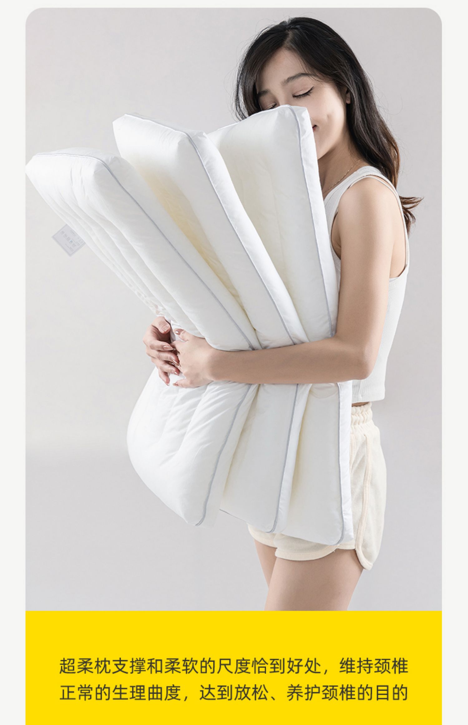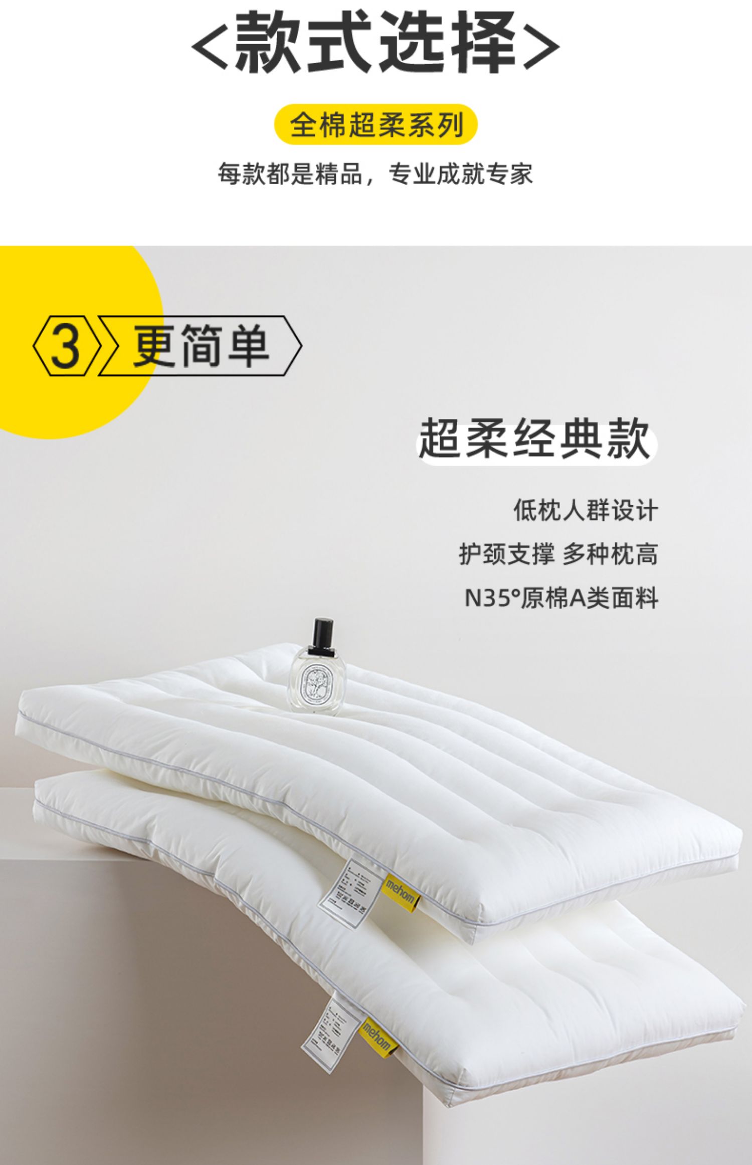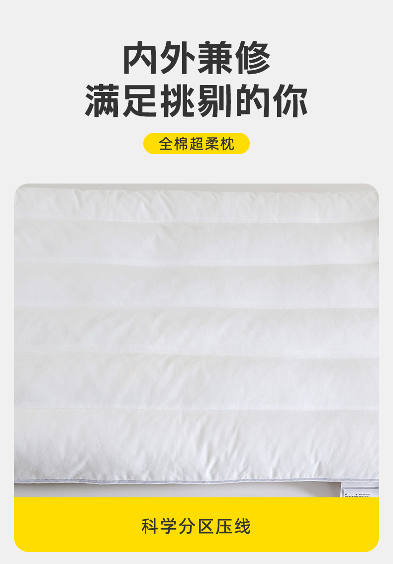 全棉枕头软低枕芯不塌陷助睡眠护颈椎整头家用一对装3儿童6小学生