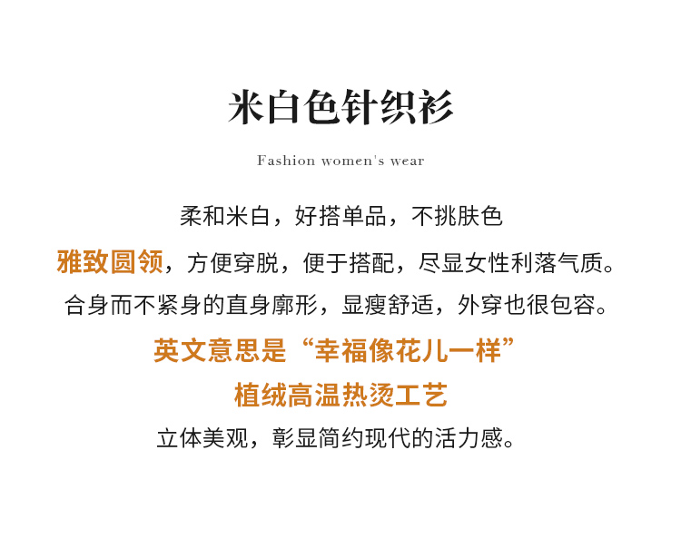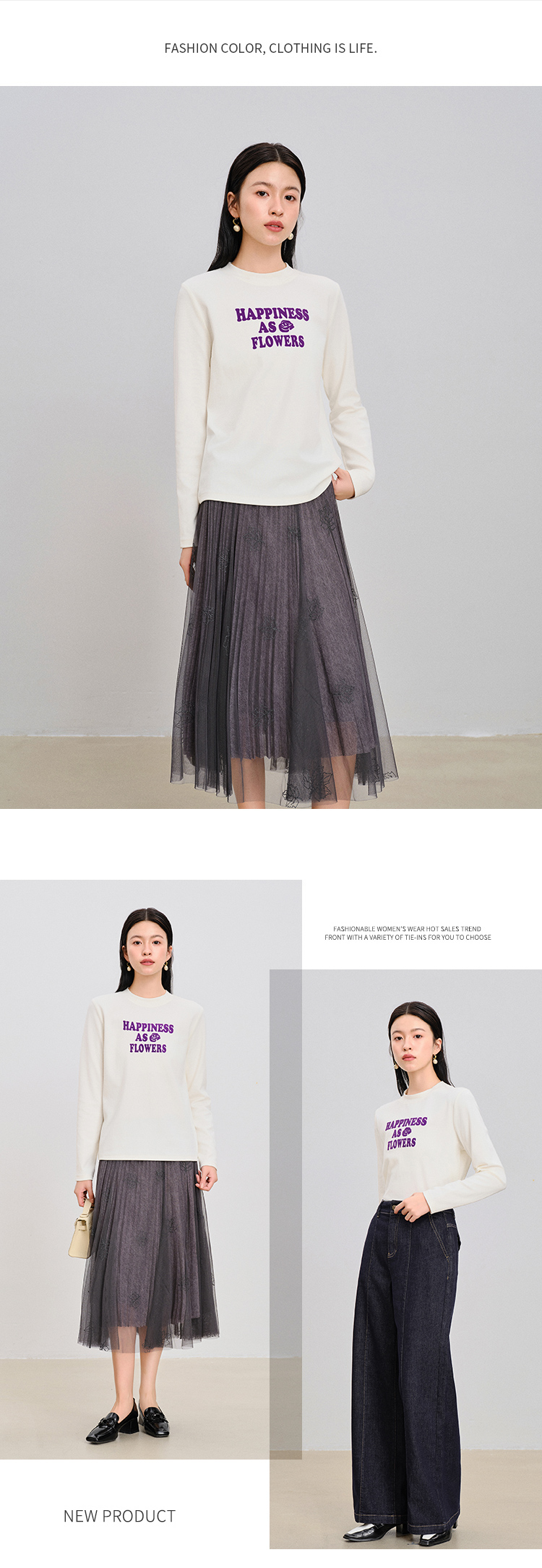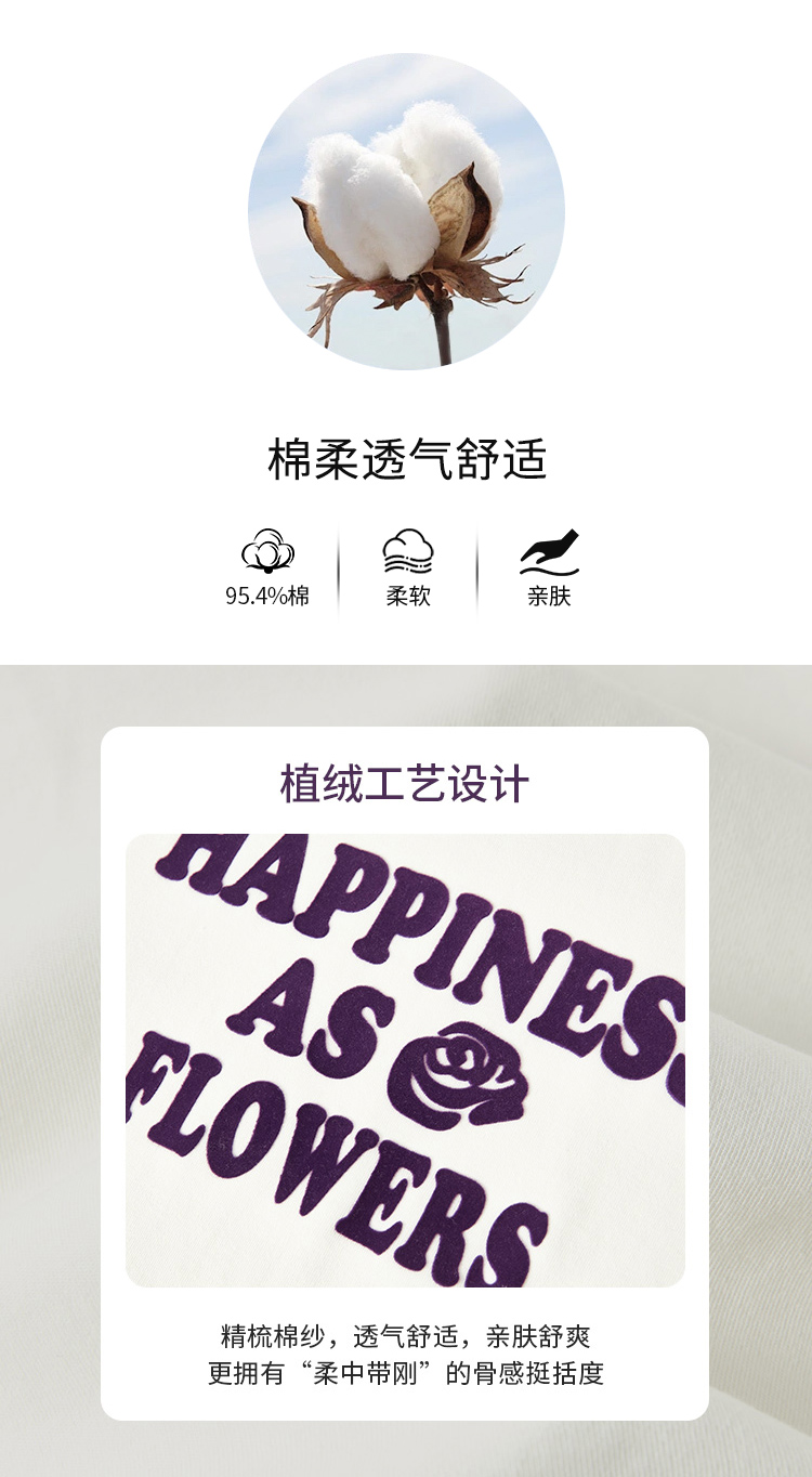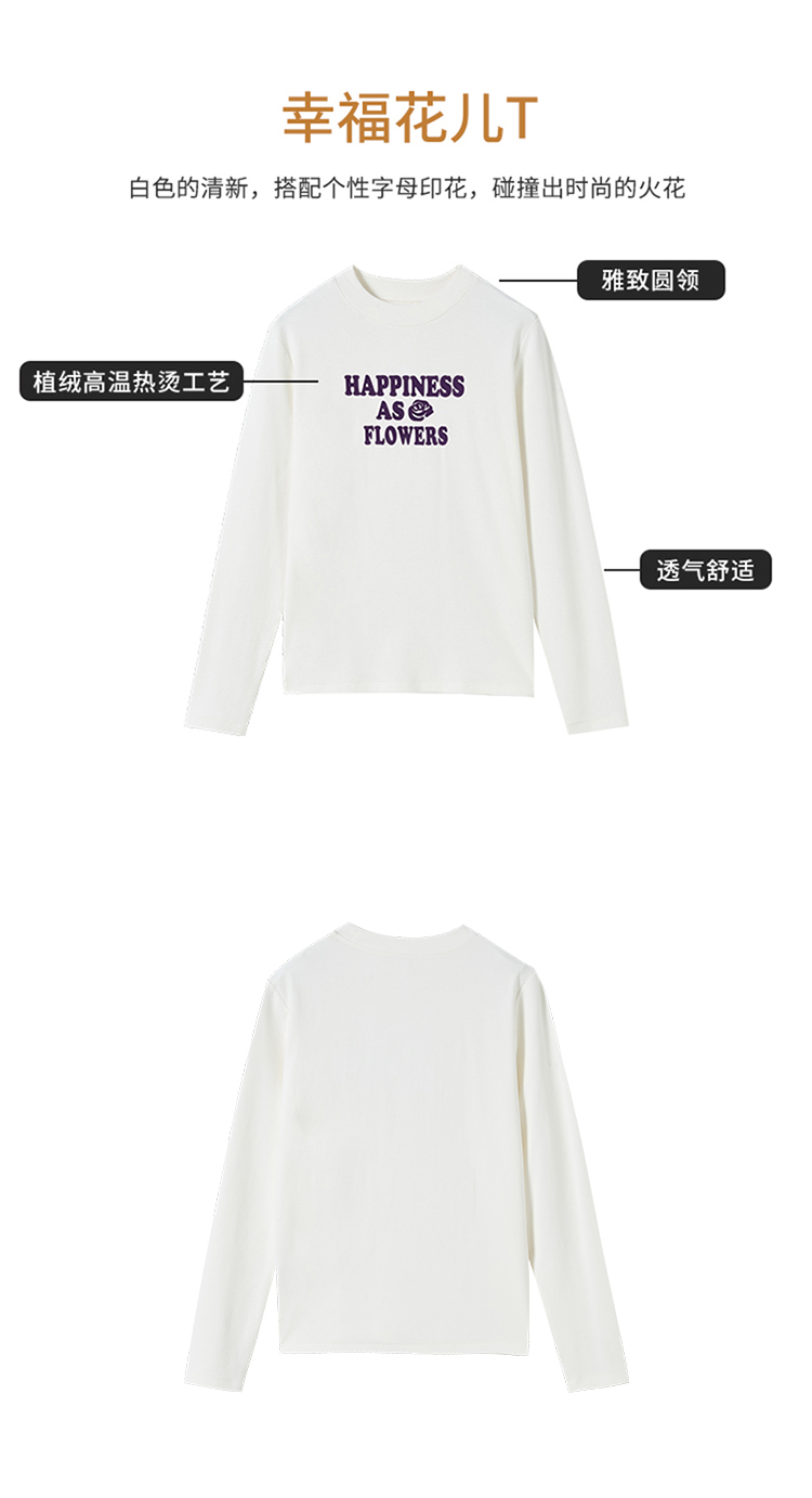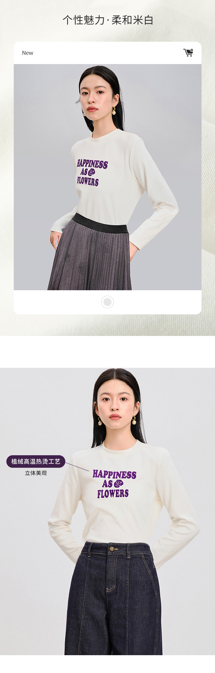【商场同款】CNA4881 “幸福花儿T” 柔和米白色 经典百搭不挑肤色 植绒高温热烫工艺 立体美观 直身廓形 显瘦舒适T恤