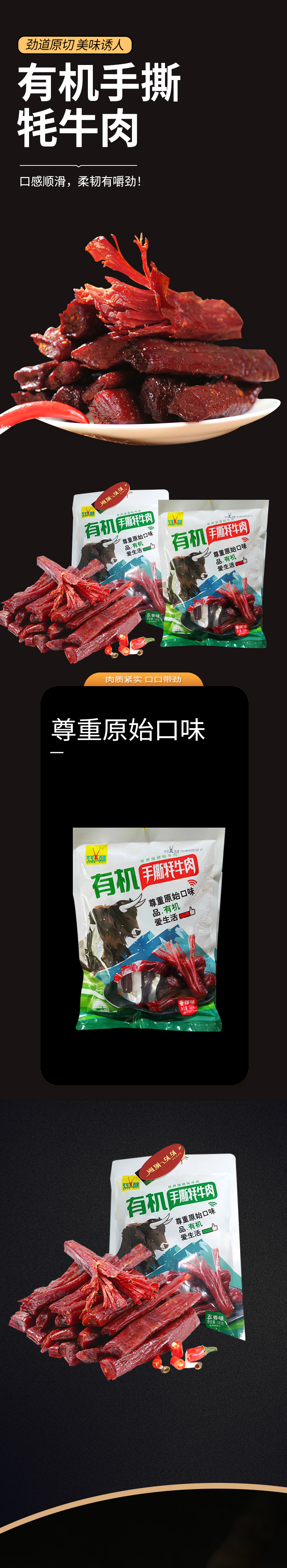 青海果洛州玛沁县100g有机手撕牦牛肉(香辣)(五香) 两种口味可选,15袋起售 商品图2