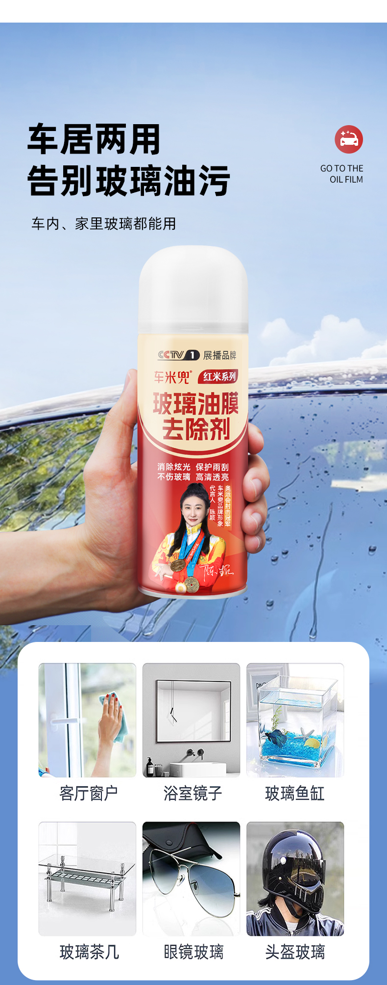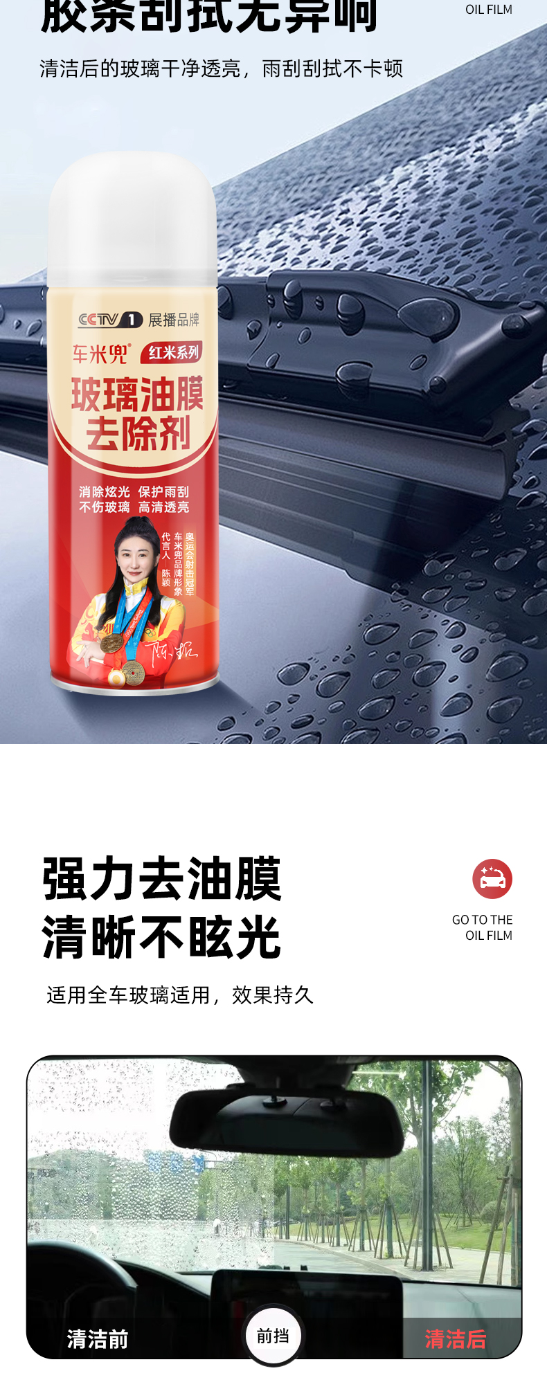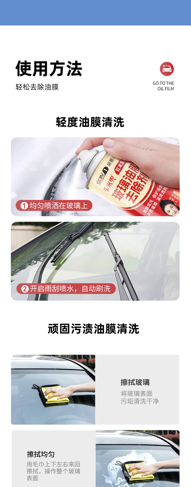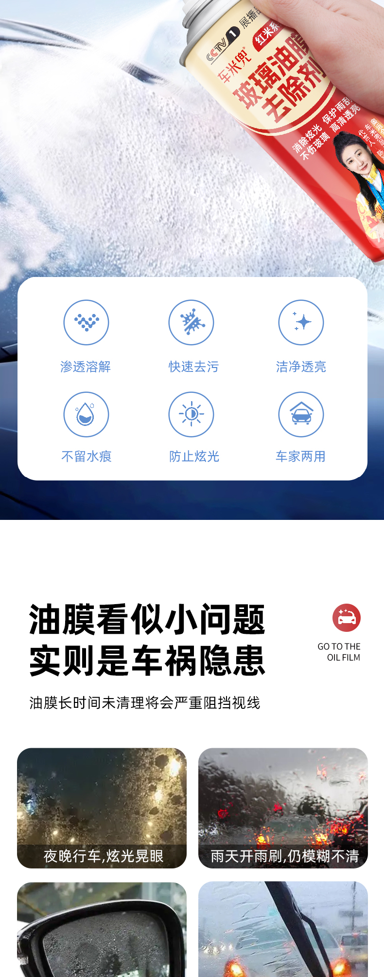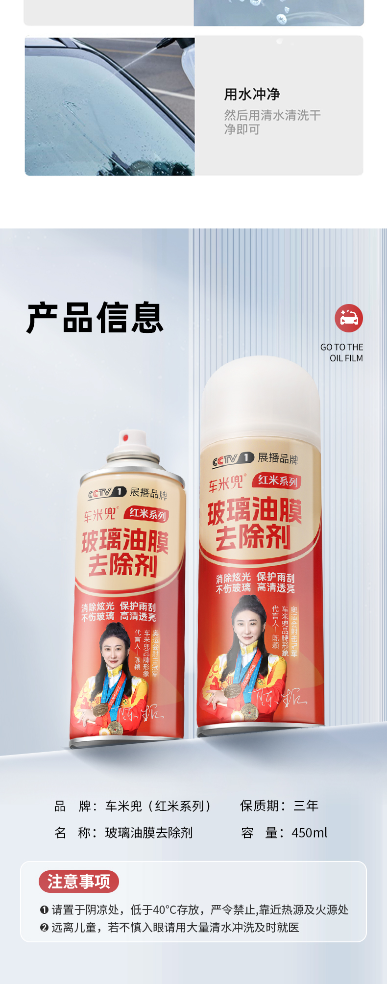 【溶解鸟粪虫胶】车米兜前挡玻璃油膜去除剂 去污泡沫红米版 油膜清除剂 去油膜清洁二合一 450ml/瓶