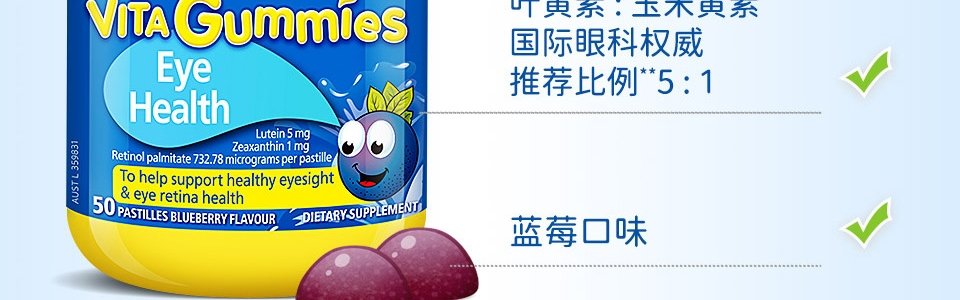 【保税】澳洲 佳思敏(Nature's Way) 儿童叶黄素护眼软糖 50粒 适合4岁以上儿童和青年