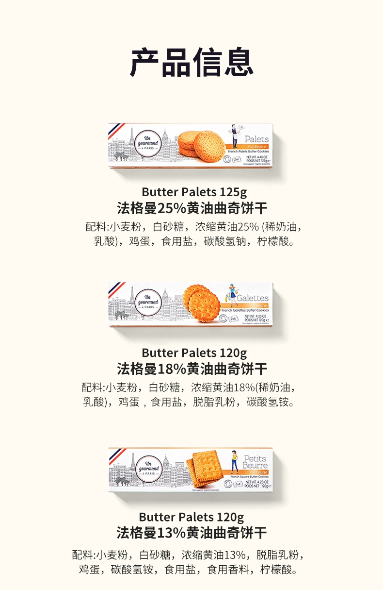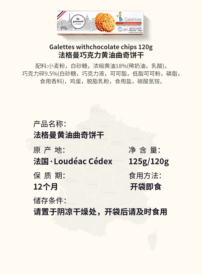 法国法格曼黄油曲奇25%18%13%巧克力多口味曲奇饼干120g 口口奶香酥松绵密 051542-4/051542-2/051542-1/051542-3