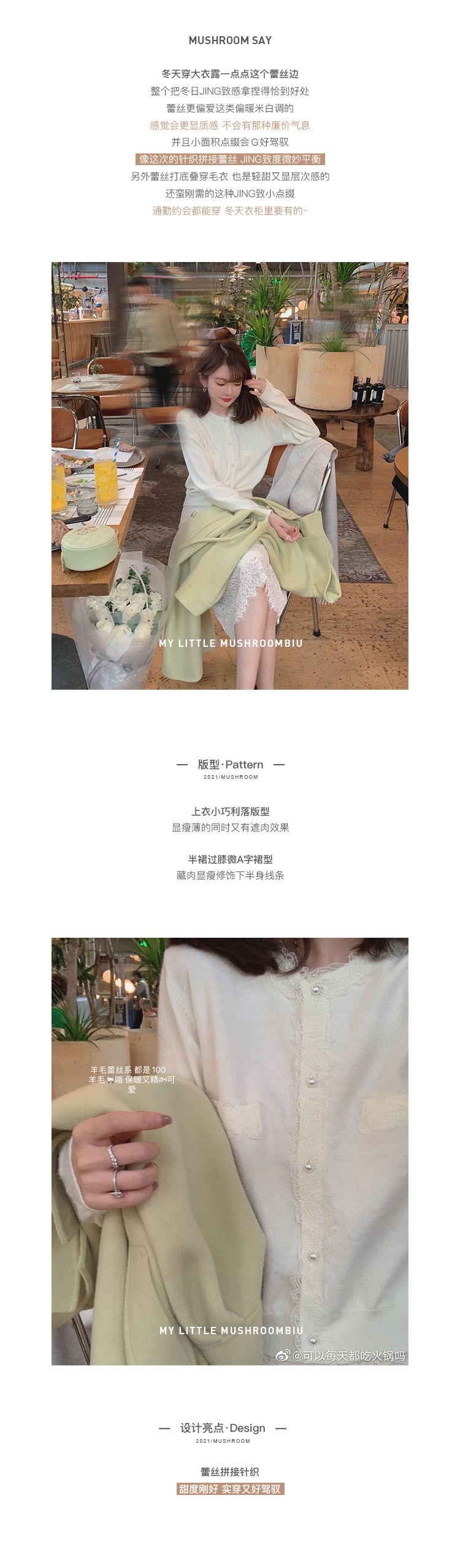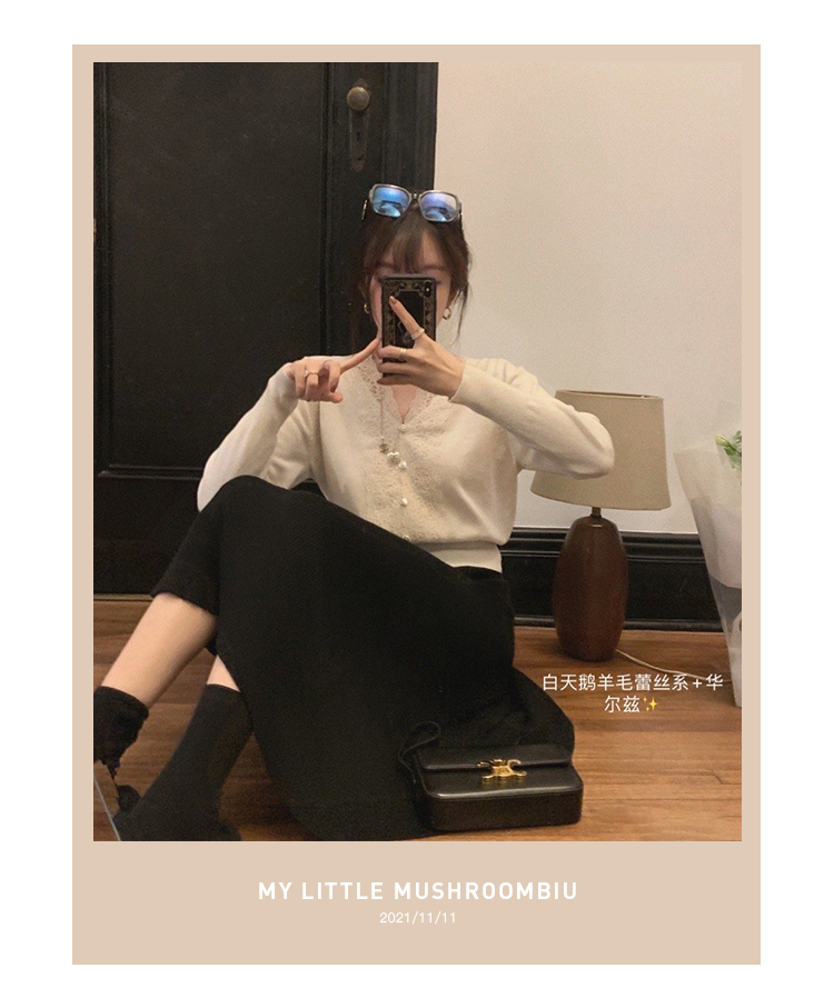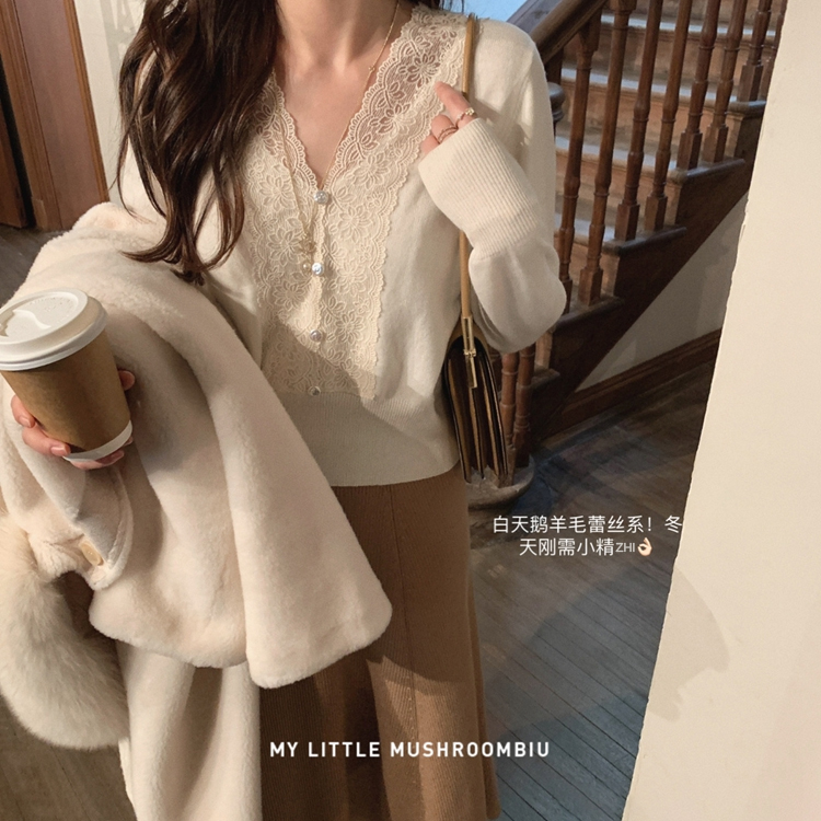 金蘑菇菇【白天鹅 羊毛蕾丝系】100羊毛!轻甜点缀打底衫