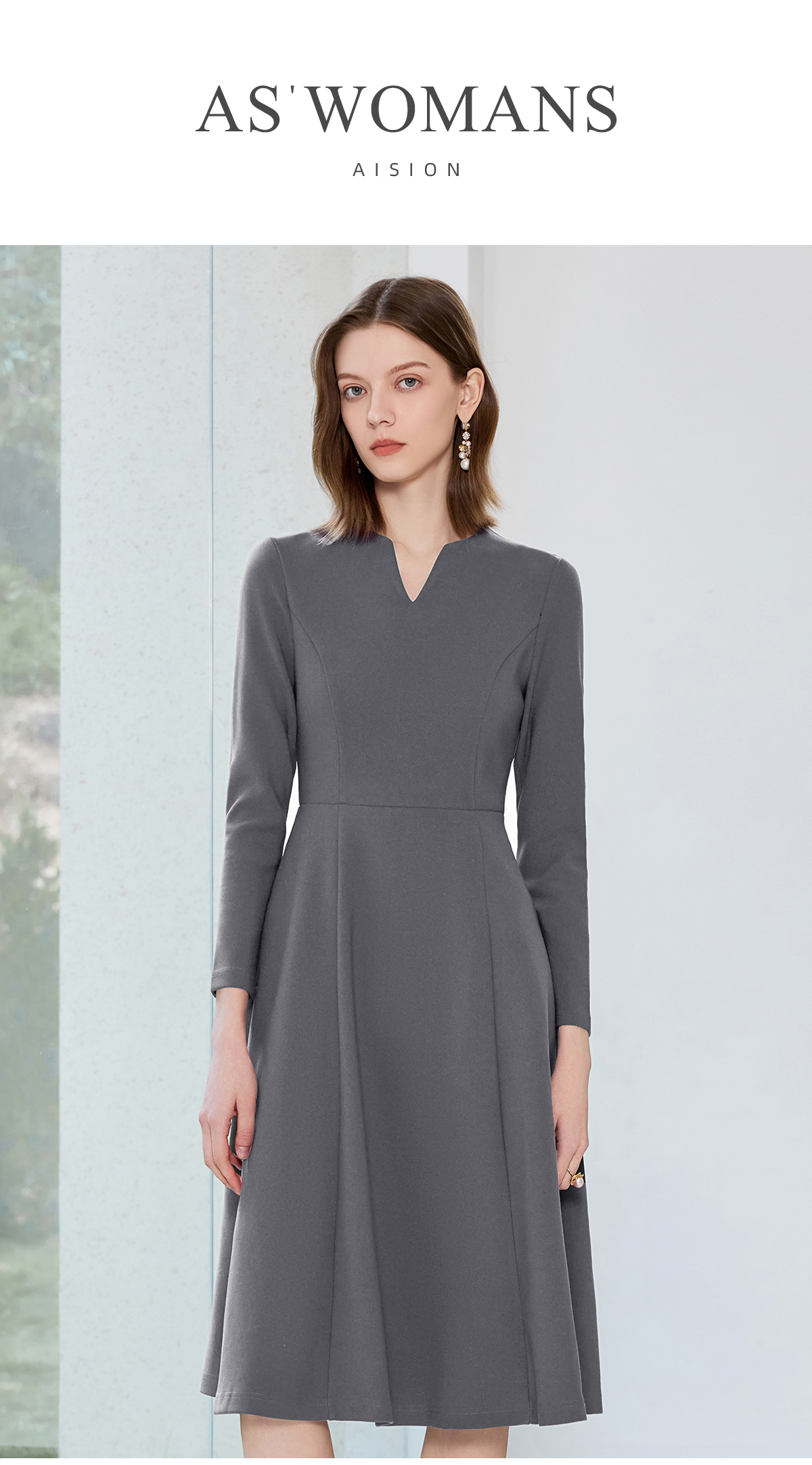 IWY/灰色西装连衣高级感修身通勤商务职业裙秋季长袖工作服J25Q246-E