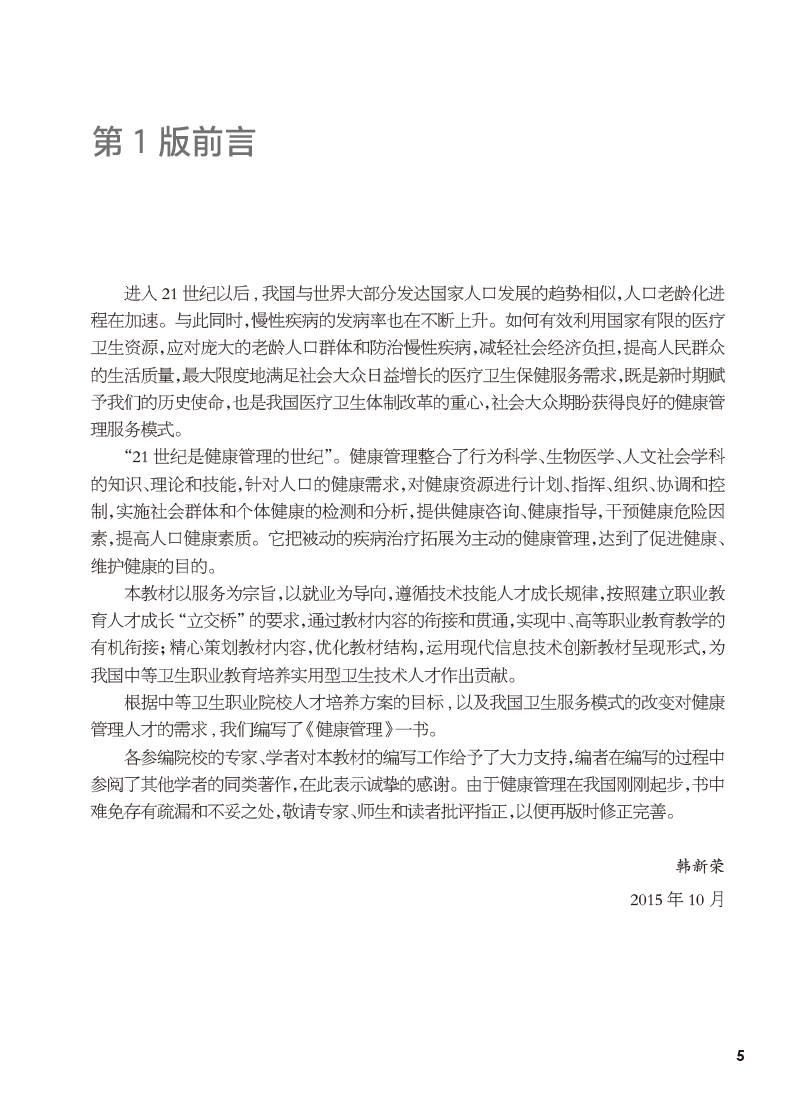 健康管理 第2版 韩新荣主编 十四五规划教材 全国中等卫生职业教育教材 供营养与保健专业用 人民卫生出版社9787117346214