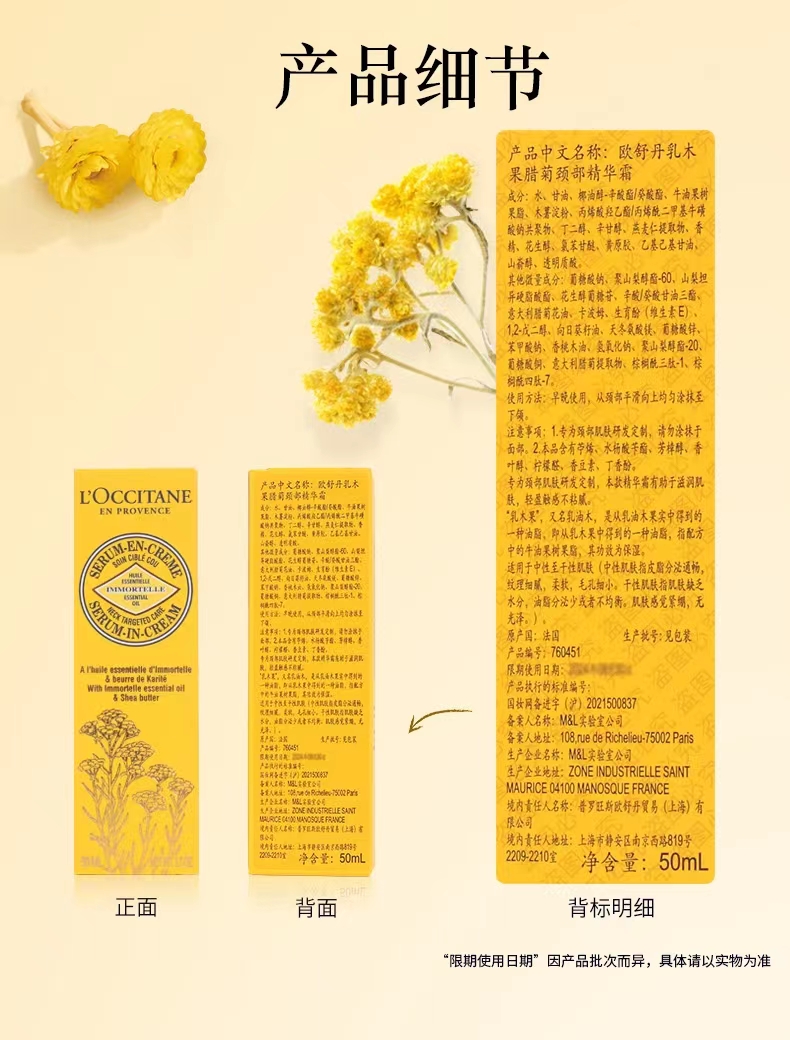 1F【欧舒丹】欧舒丹黄金颈霜乳木果腊菊颈部精华霜50ml
