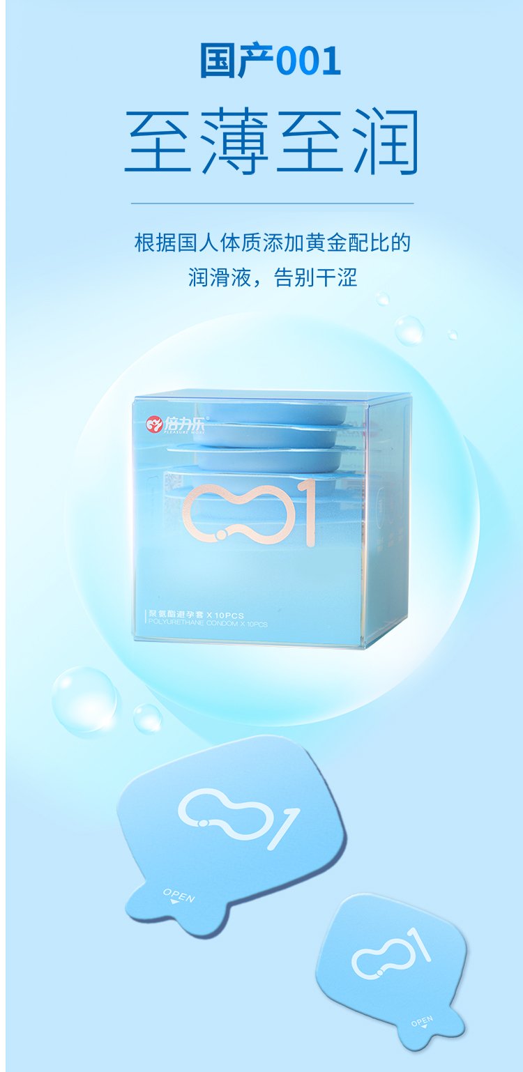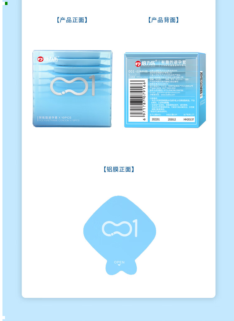 倍力乐001 避孕套超薄 6只装 男用安全套0.01mm 润滑隐形聚氨酯001套套成人计生用品