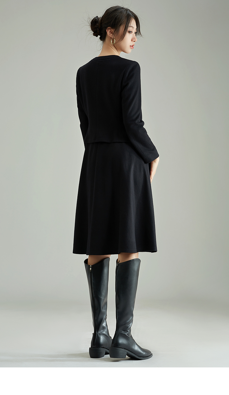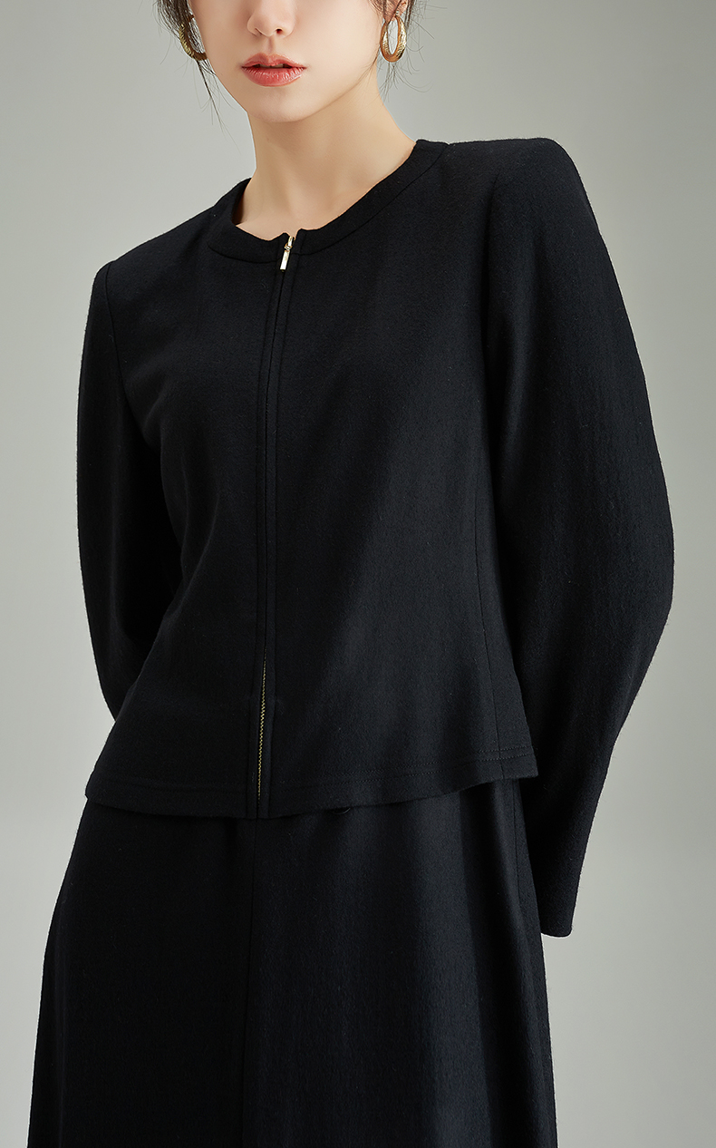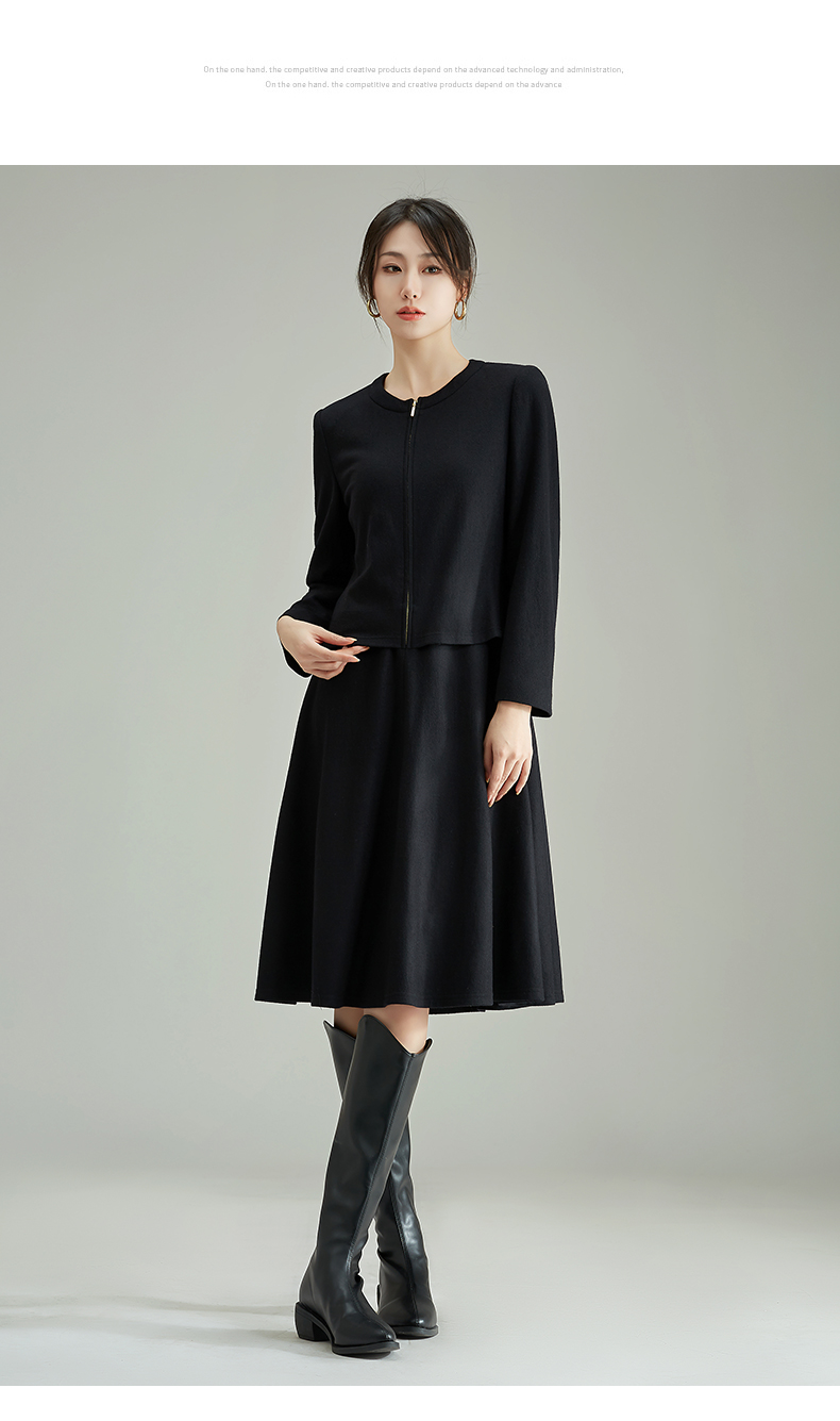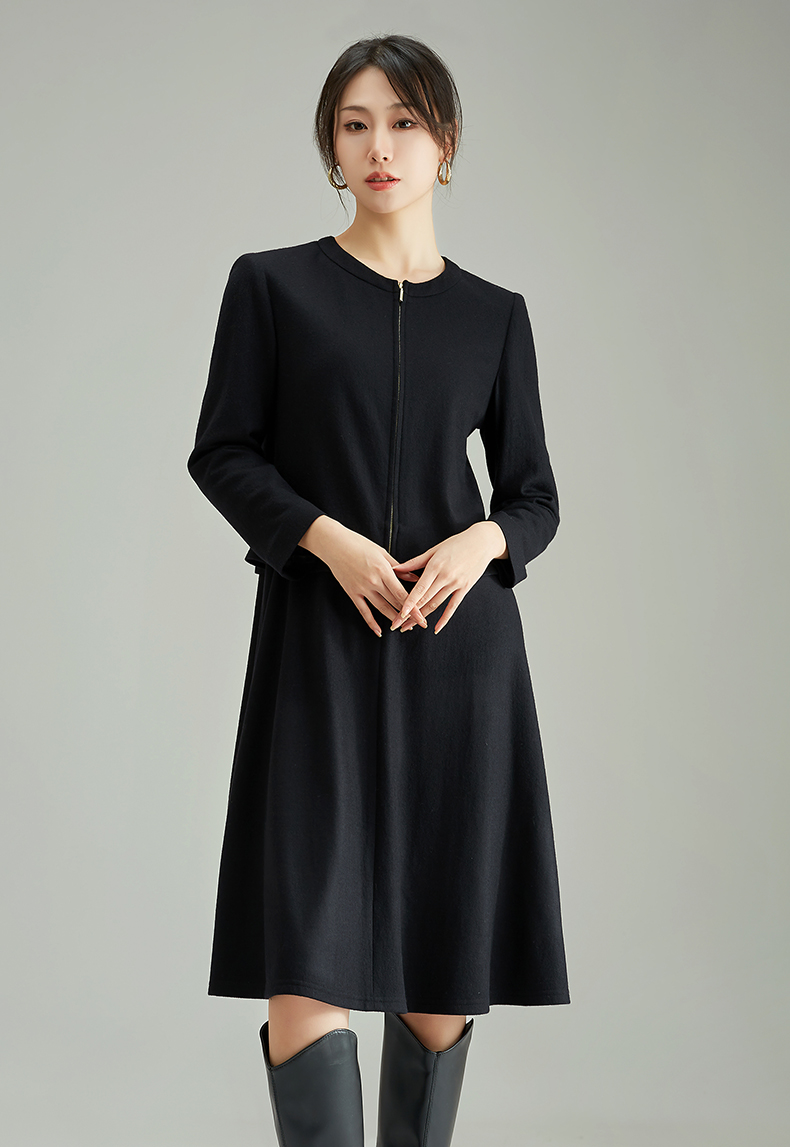 【商场同款】阿菁娜春季新款休闲拉链纯绵羊毛连衣裙A28C112059