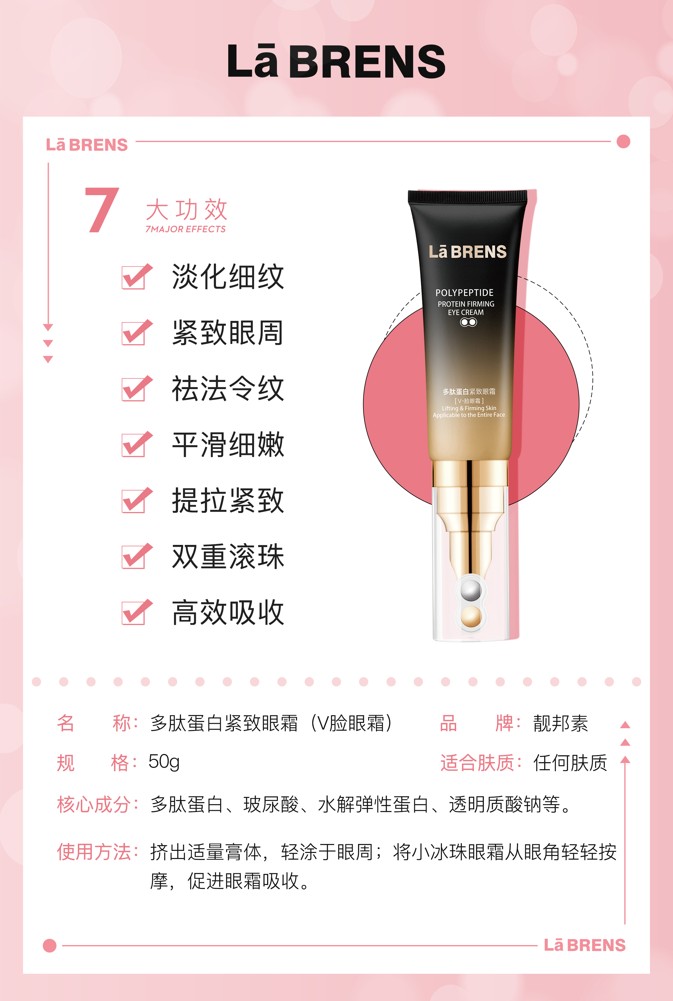 【拍一发二】【靓邦素】多肽蛋白紧致眼霜(V脸眼霜) 50g