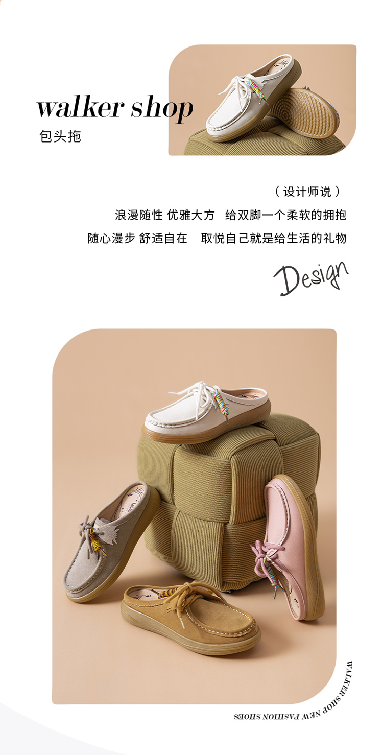 Walker Shop包头半拖鞋女2025春季新款舒适一脚蹬休闲鞋懒人拖鞋K152058