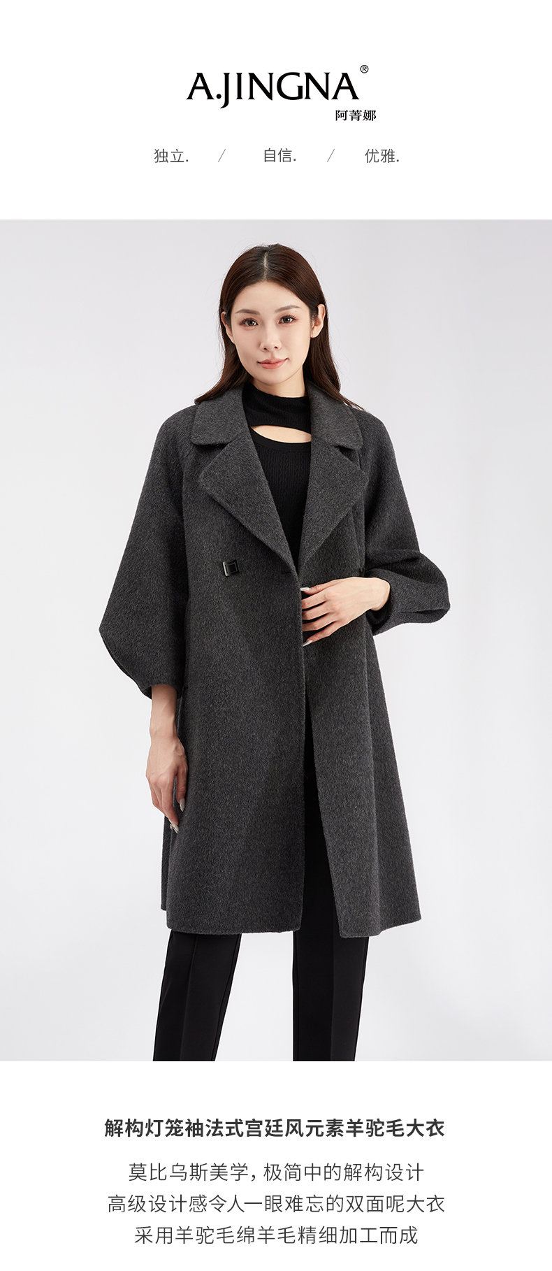 【商城同款】阿菁娜解构灯笼袖法式宫廷风元素羊驼毛大衣F30D211020