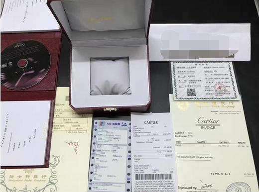 实收物品:1手表、2专柜系列原装盒、3说明书、4保修卡、5吊牌、6手提袋、7国家证书、8专柜机打小票、9银联pos机刷卡单、10表行发票、11验货码、12信封、13拆表工具