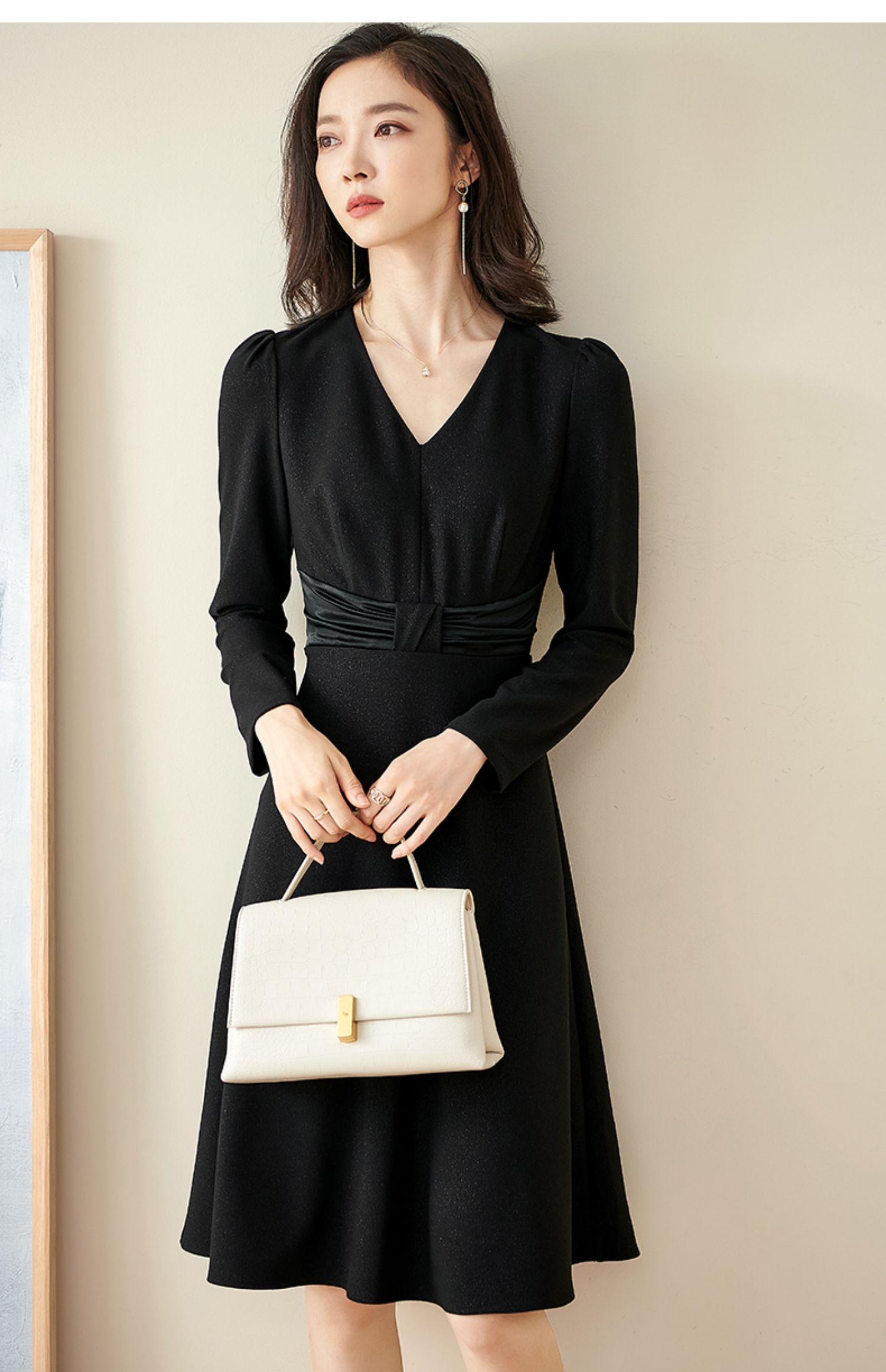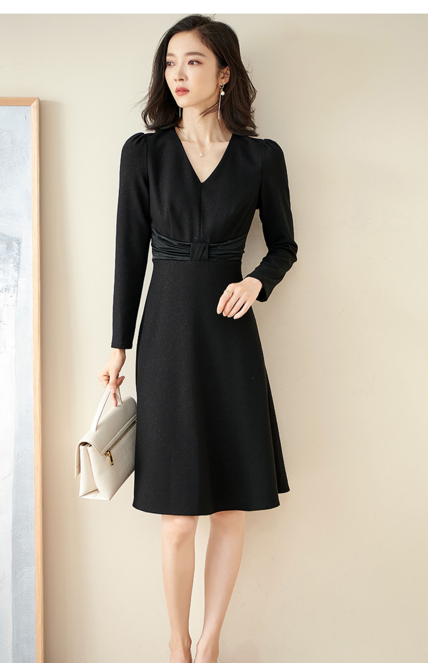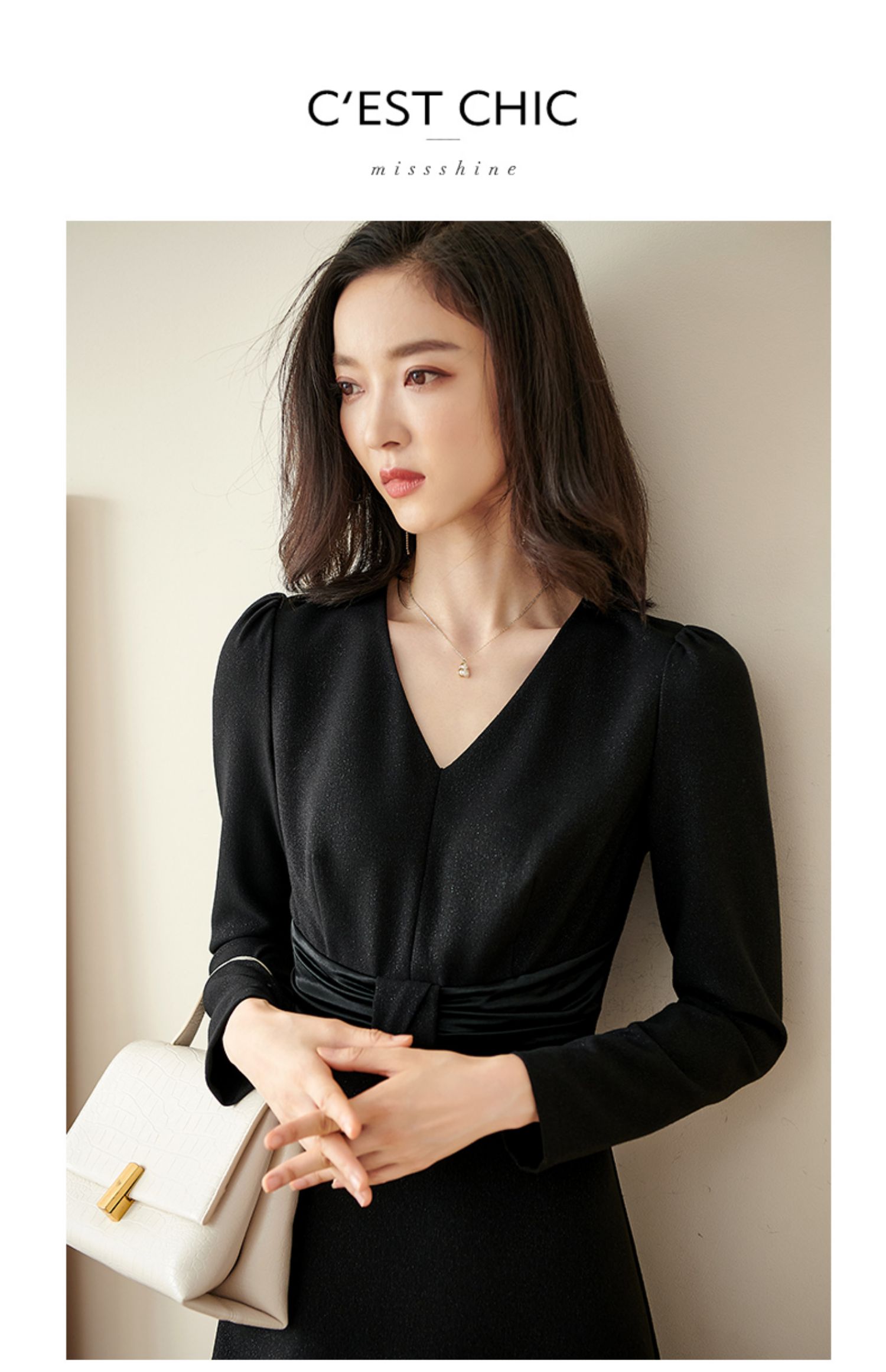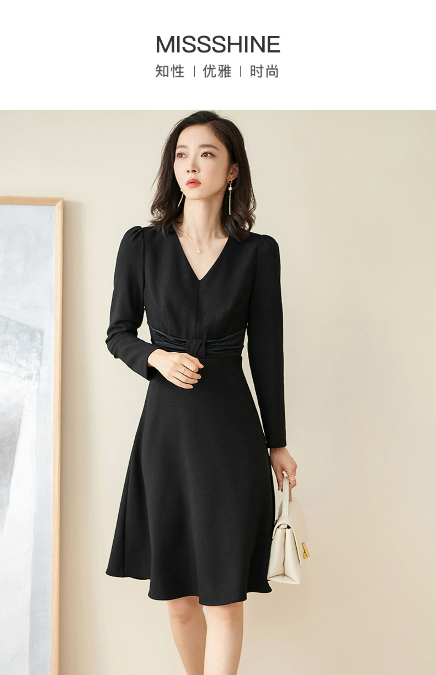 剩S 米思阳a字连衣裙2025新款秋季法式气质小众v领长袖小黑裙1628