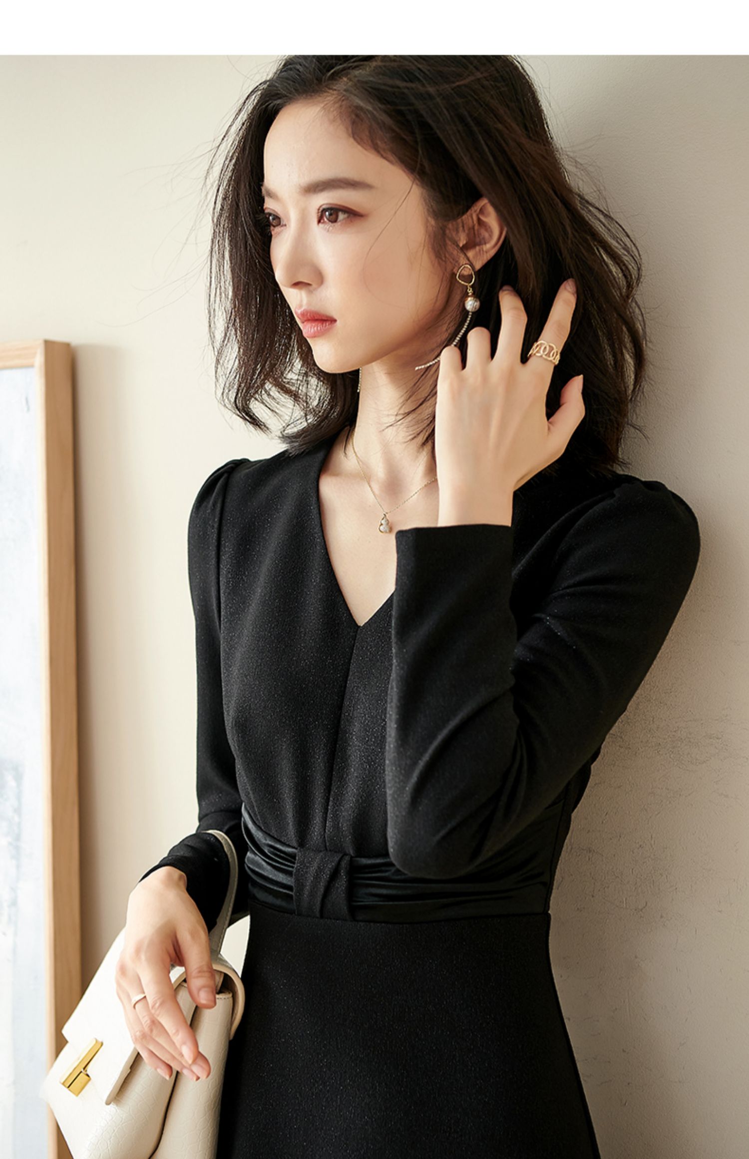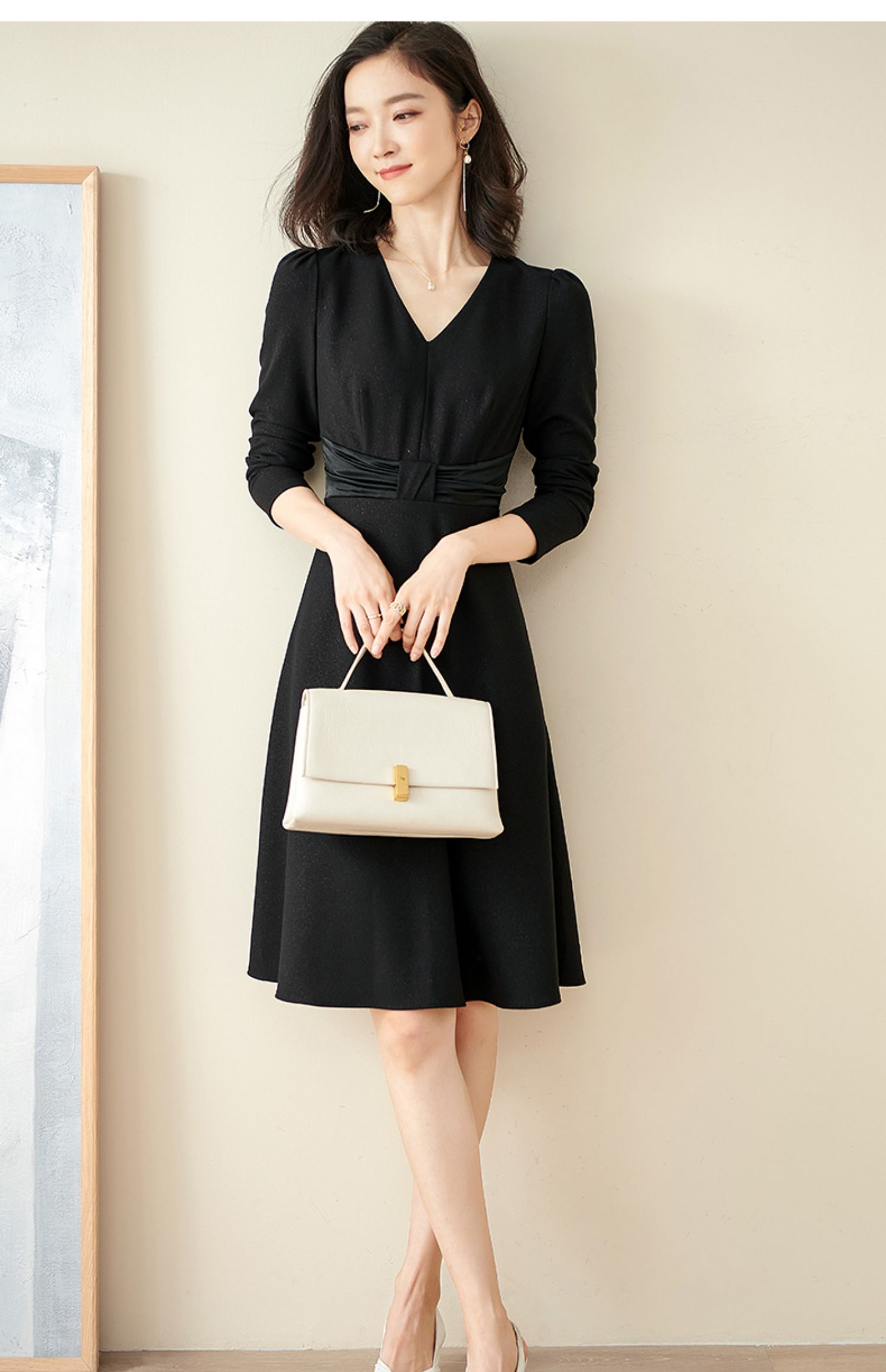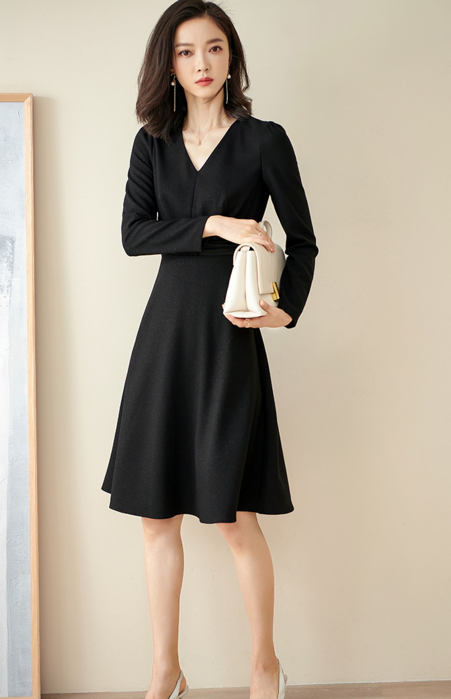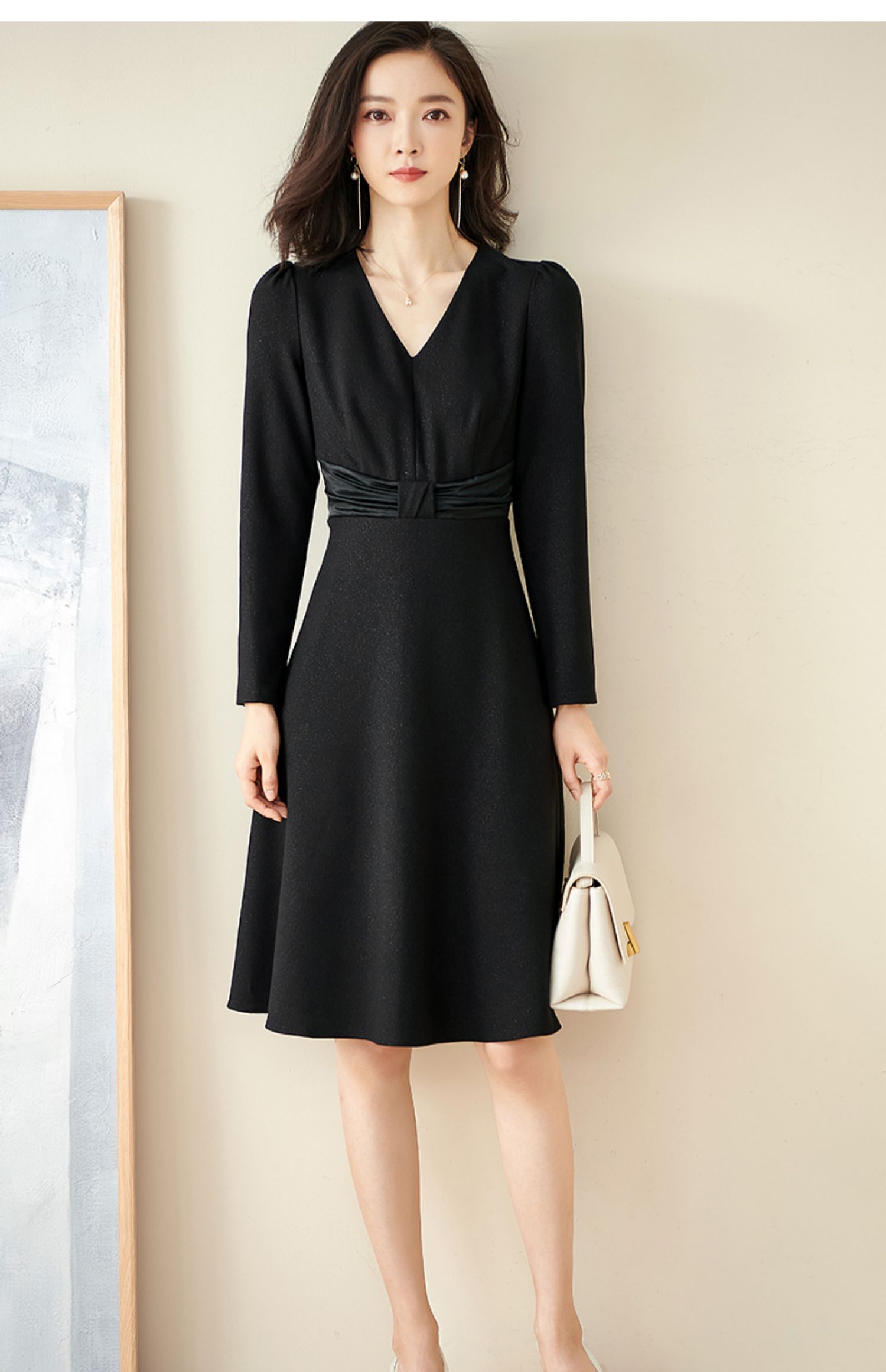 剩S 米思阳a字连衣裙2025新款秋季法式气质小众v领长袖小黑裙1628