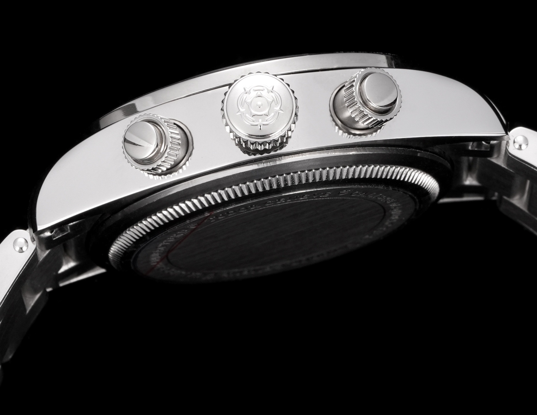 - 测速外圈:配备哑光黑色阳极氧化铝测速计字圈,适合赛车计时功能。