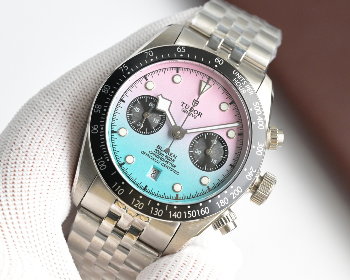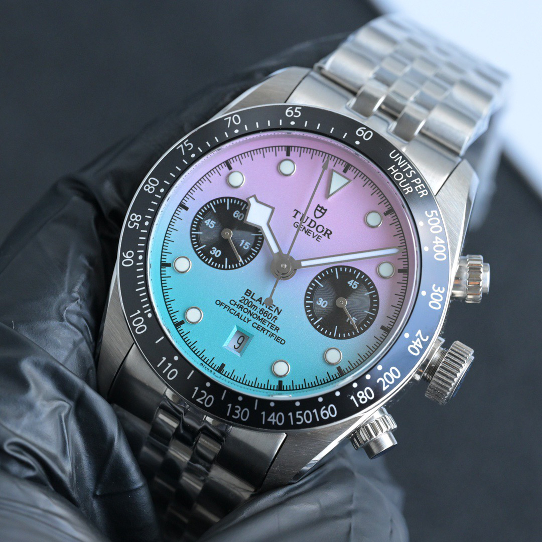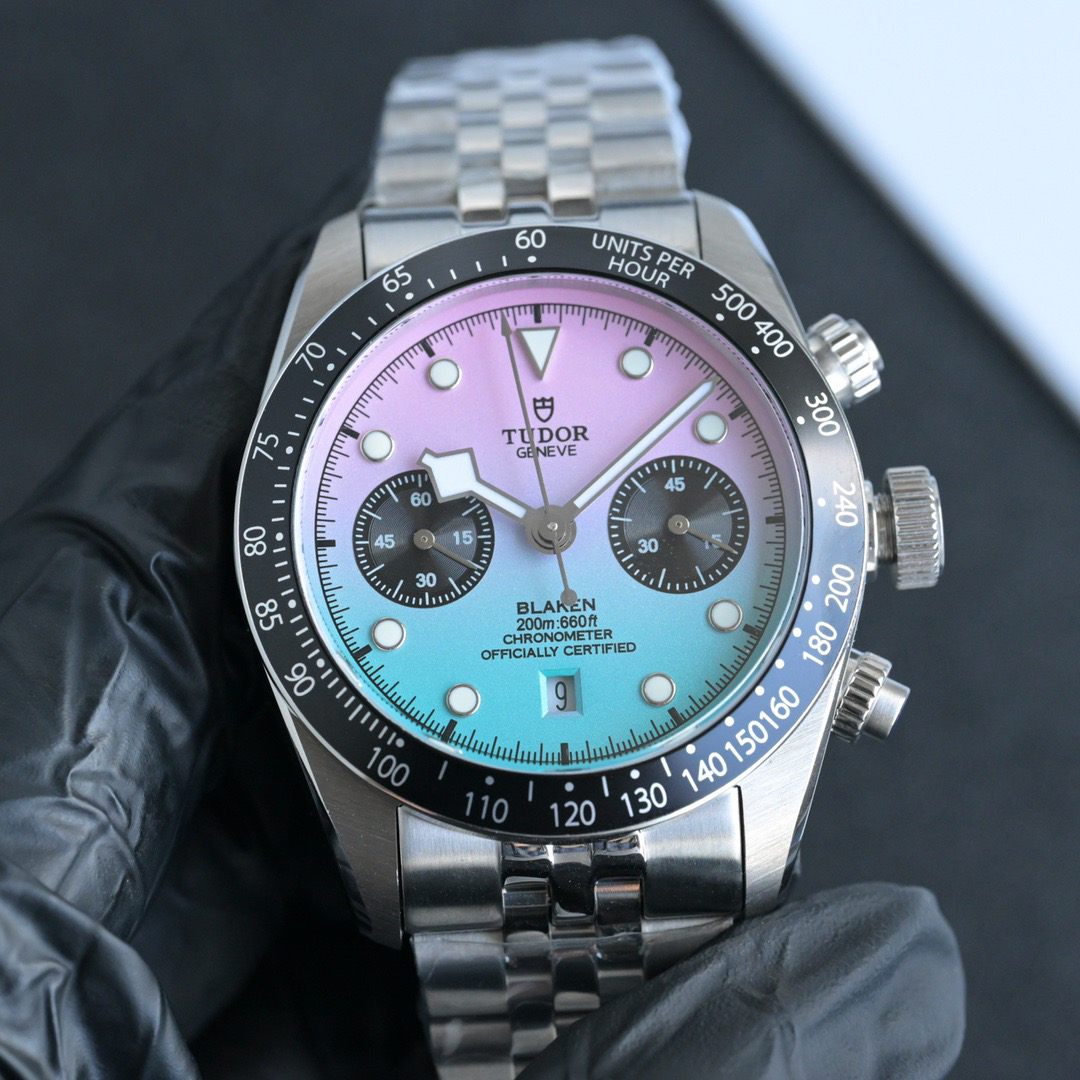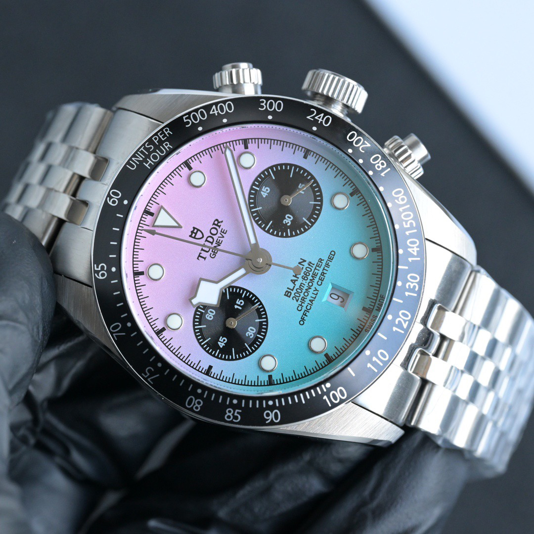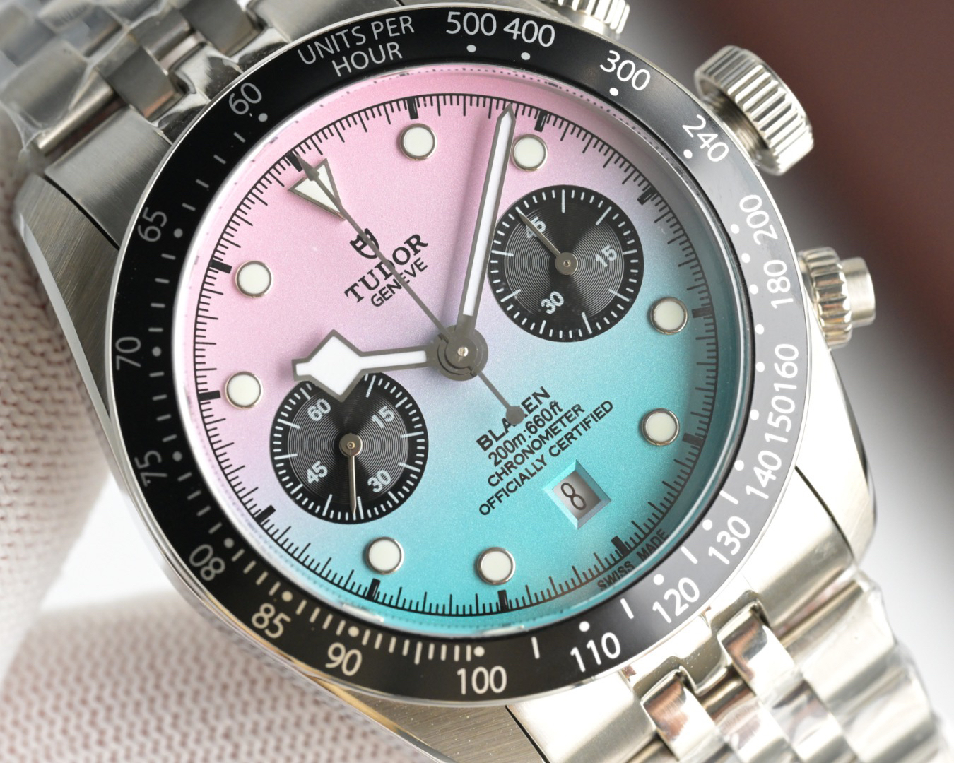 NOOB新品 帝舵(TUDOR)Black Bay Chrono系列是一款融合潜水表传统与赛车计时功能的混合型腕表,以其复古美学与现代技术著称。以下是该系列的主要特点及型号简介: