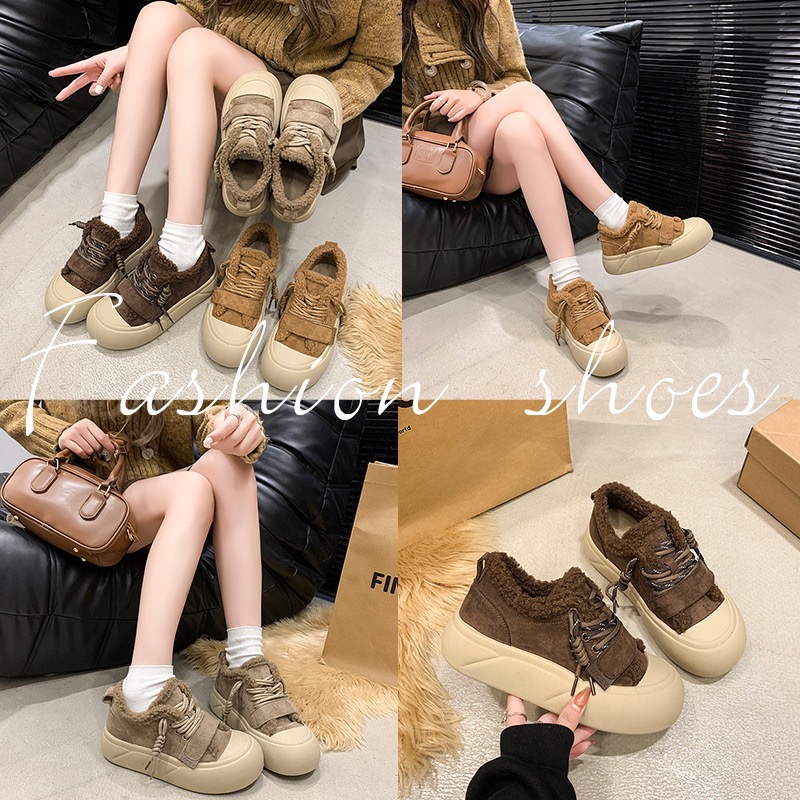 【HF】无忧购“清仓福利”韩系休闲复古美拉德厚底防滑羊羔毛板鞋M535(截单后7天发货)