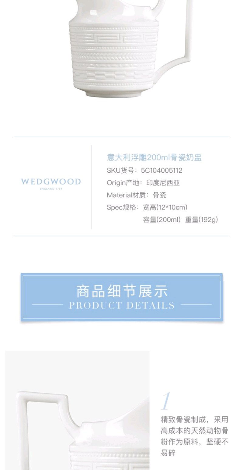 WEDGWOOD玮致活意大利浮雕200ml奶盅骨瓷咖啡奶盅礼盒5C104005112