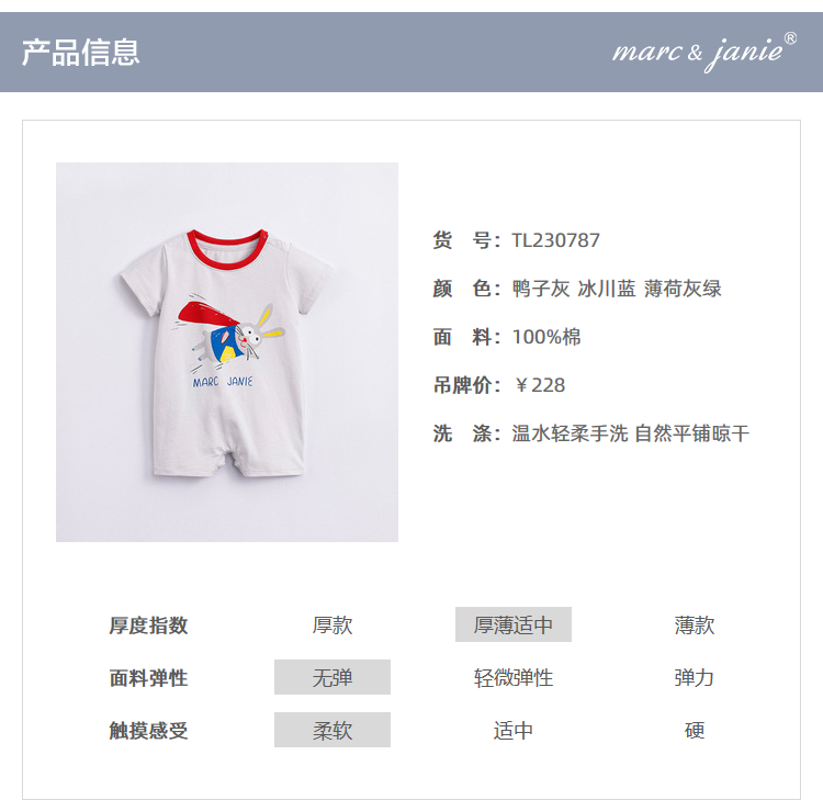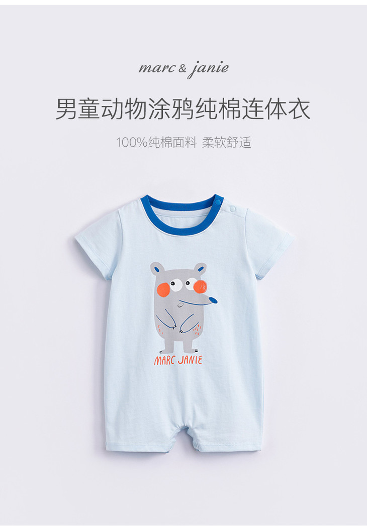 马克珍妮夏装新款 男宝宝手绘动物纯棉短袖连体衣230787
