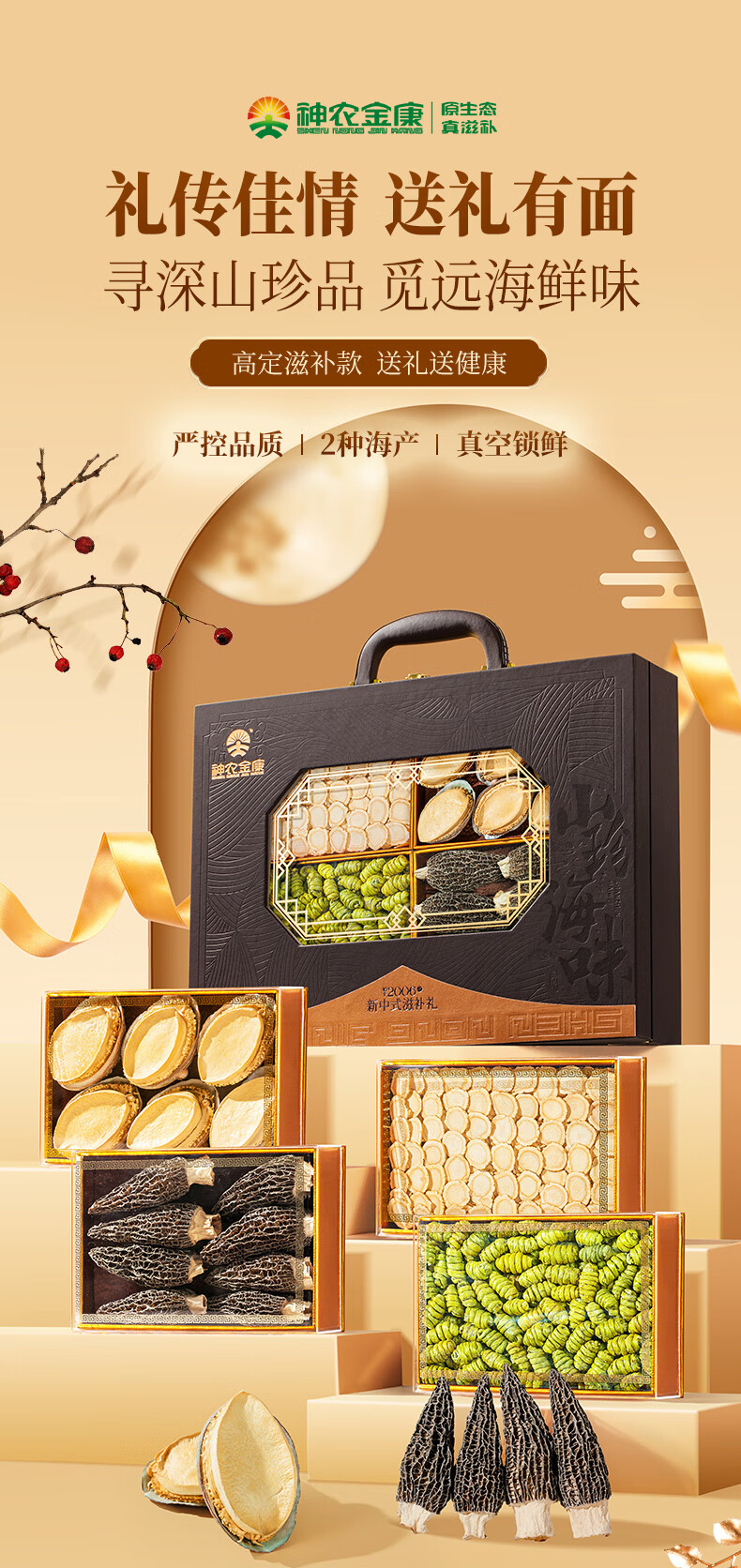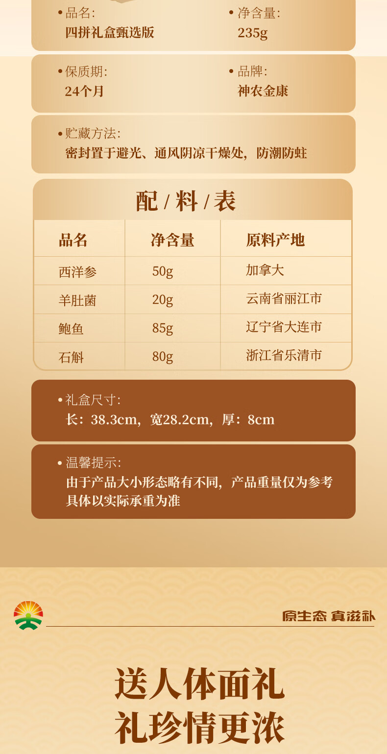 【礼盒】神农金康 鲍鱼羊肚菌西洋参石斛山珍海味礼盒235g 新中式滋补礼 原生态真滋补 喝护家人健康