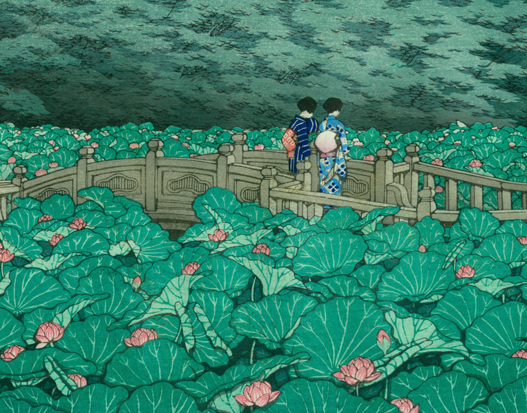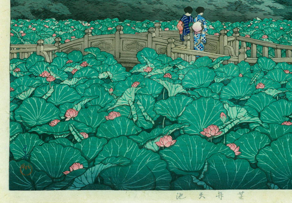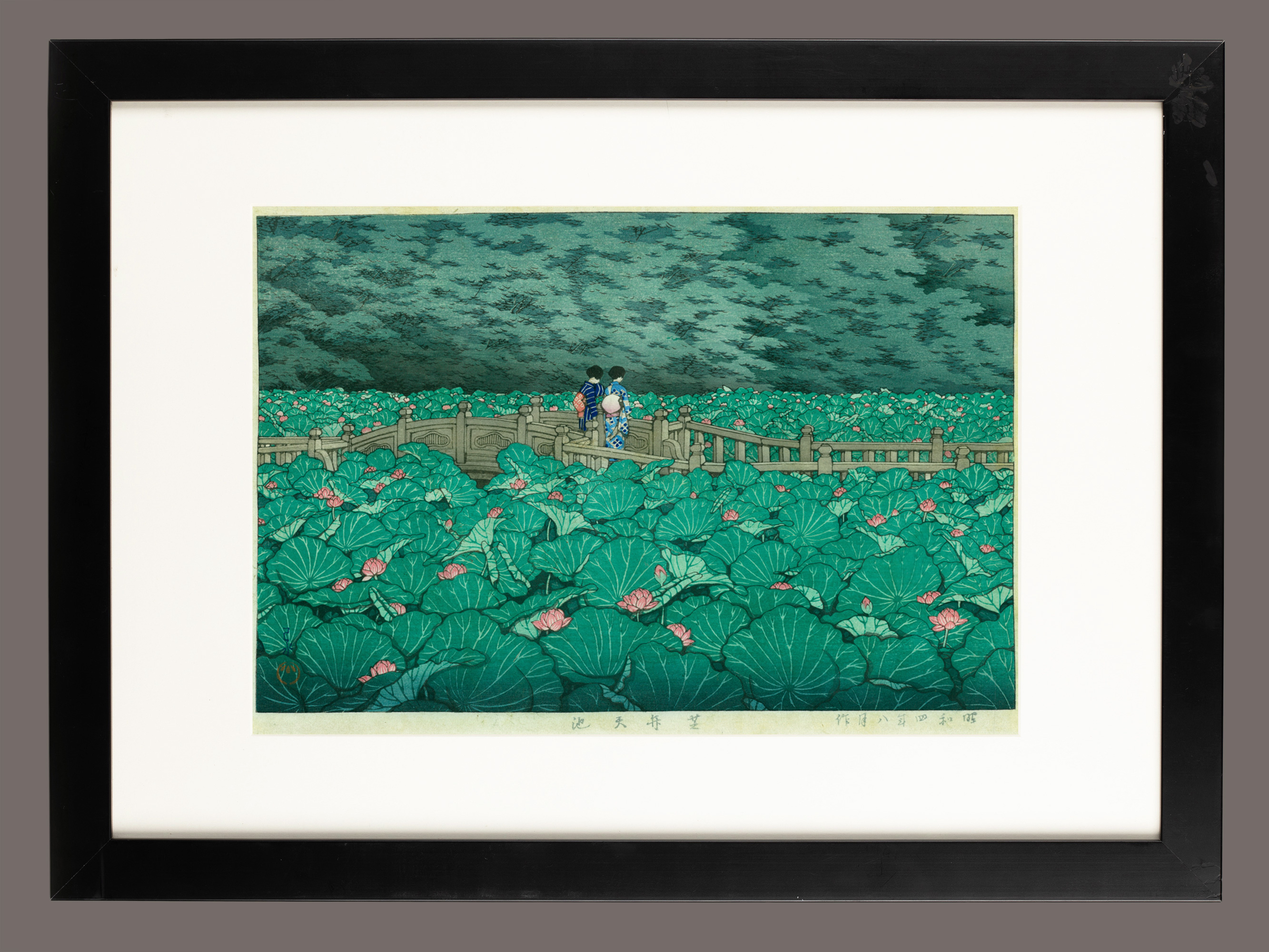 1929年日本昭和时代著名画家川瀬巴水签名浮世绘作品《芝弁天池》