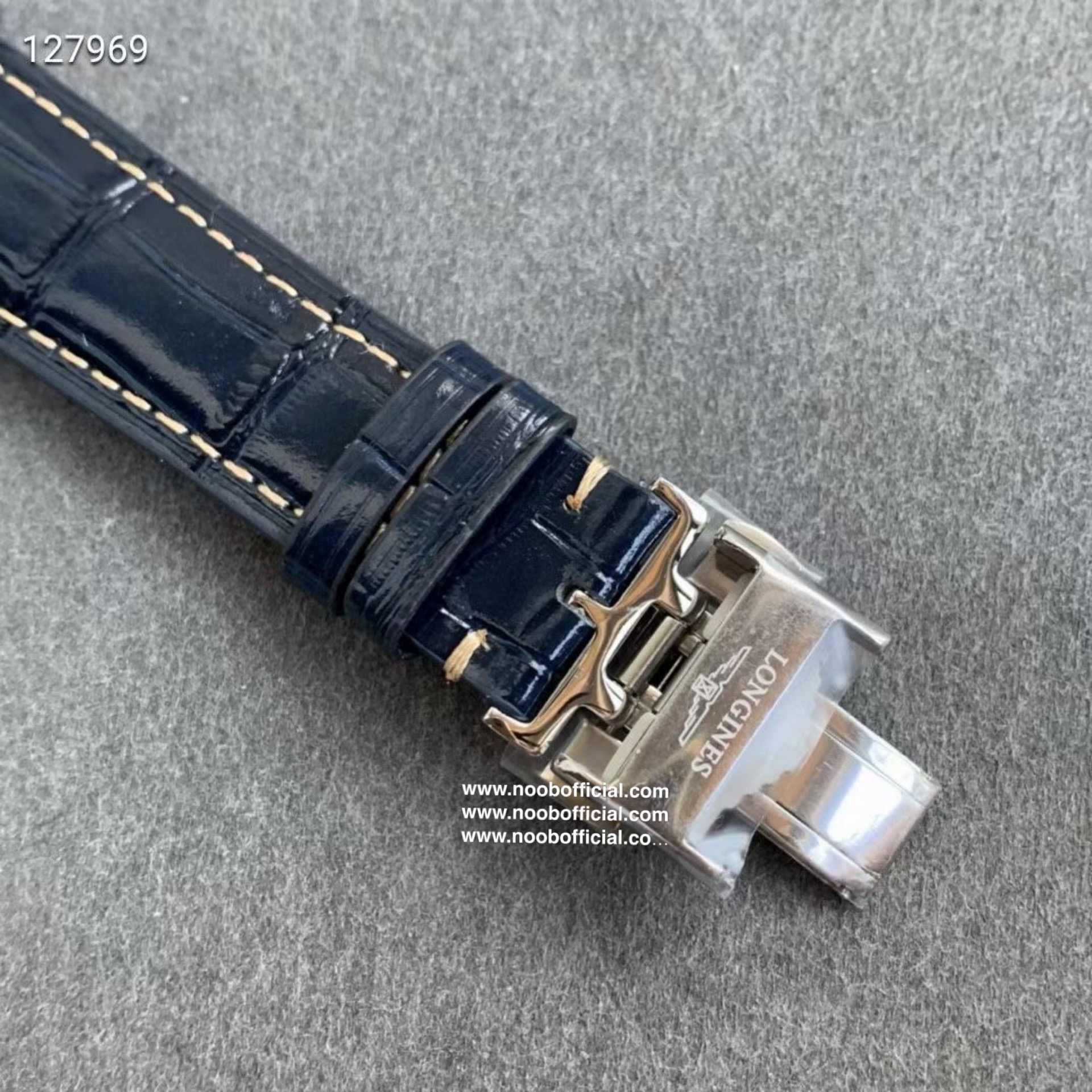 意大利小牛皮表带搭配浪琴经典蝴蝶式精钢表扣。