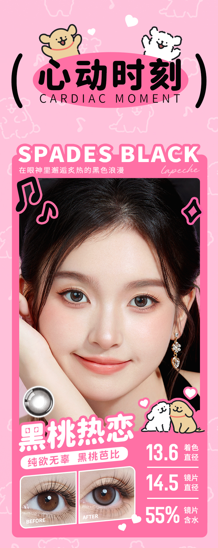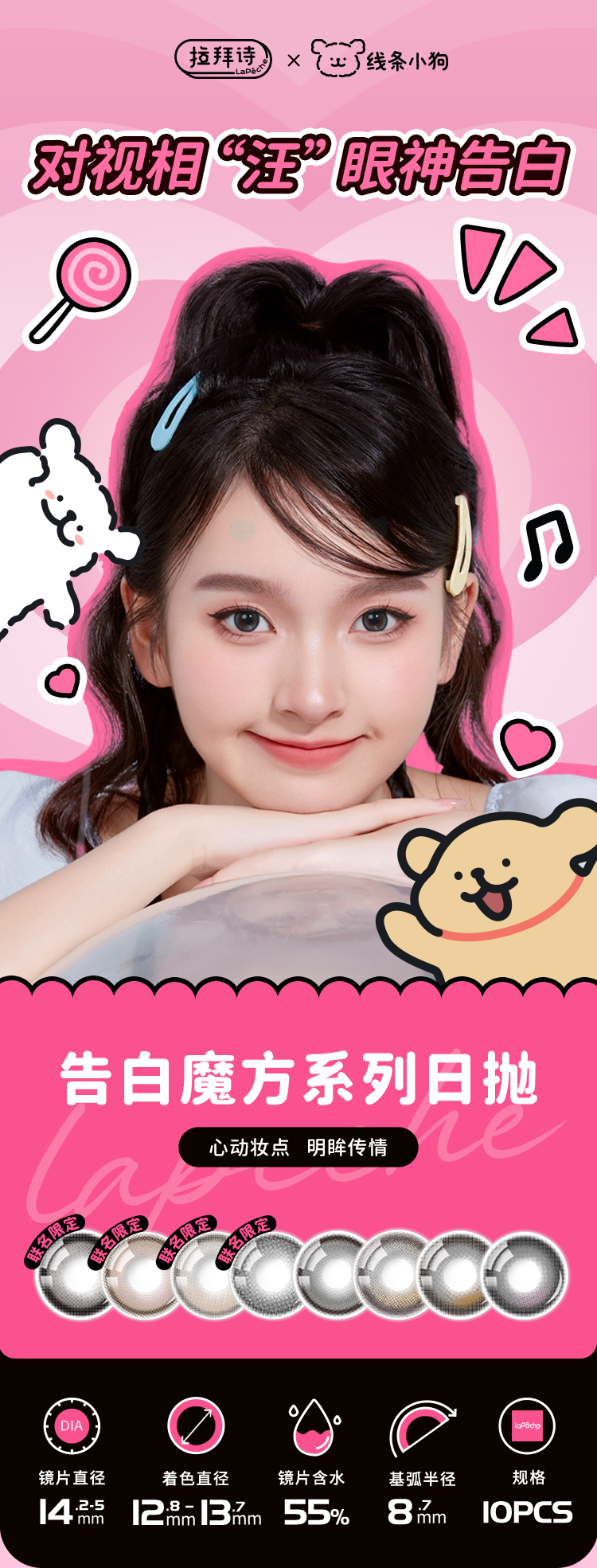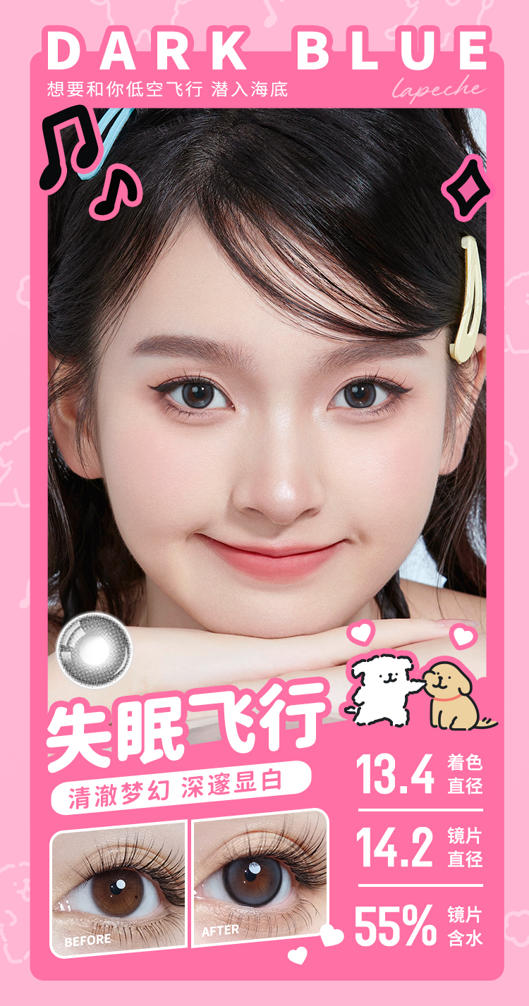 拉拜诗 线条小狗系列 黑桃热恋&心动频率&失眠飞行 日抛 一盒十片装