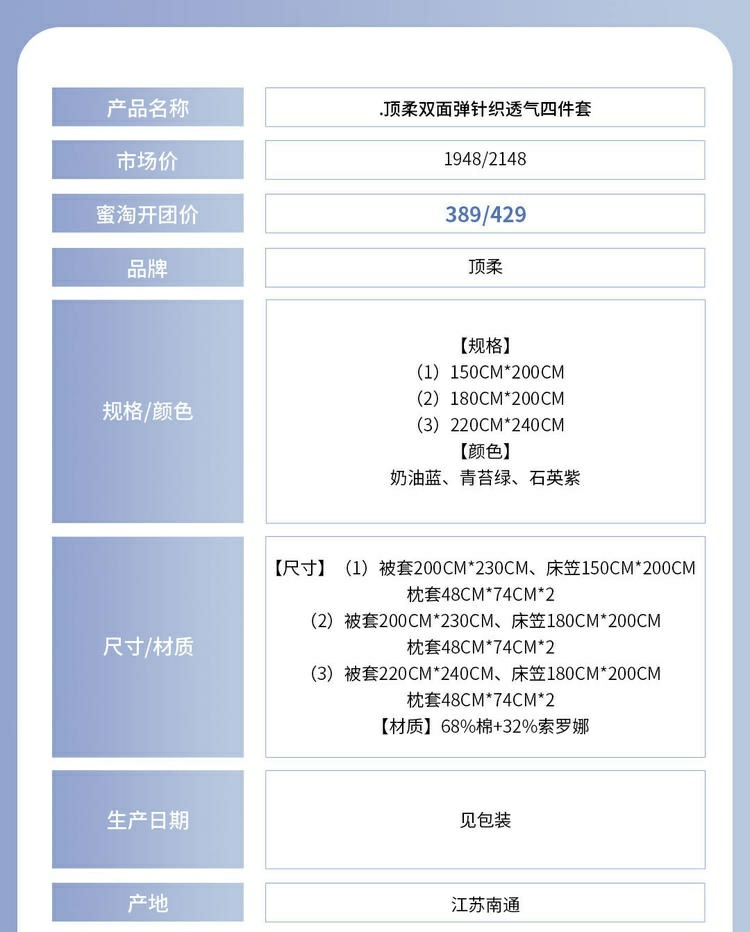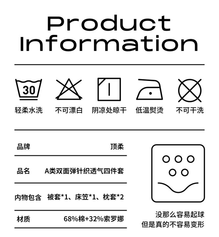 园园亲选南通家纺顶柔双面弹针织透气四件套!双面针织透气吸汗不易褶皱