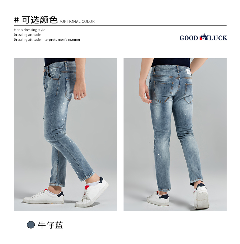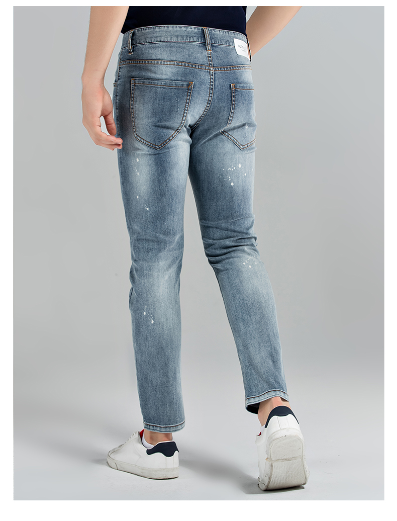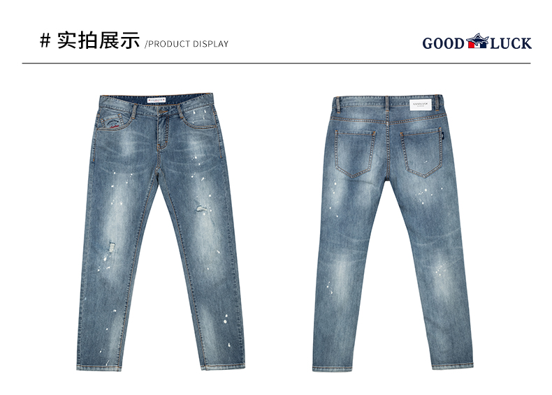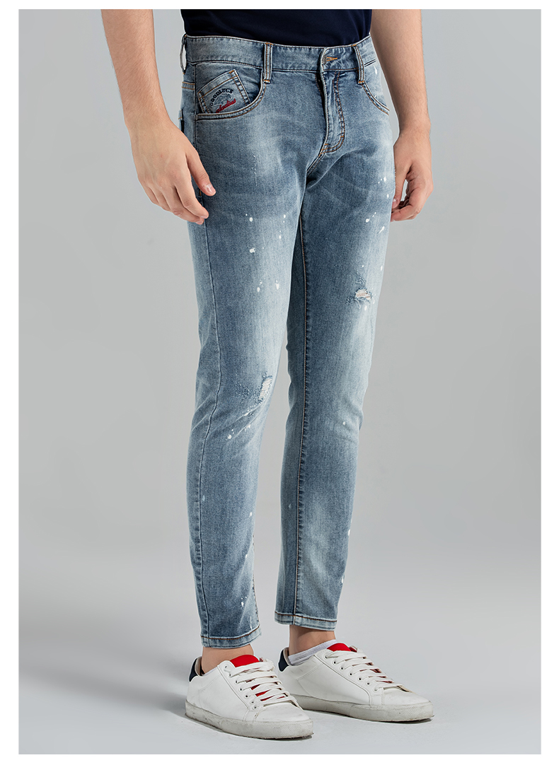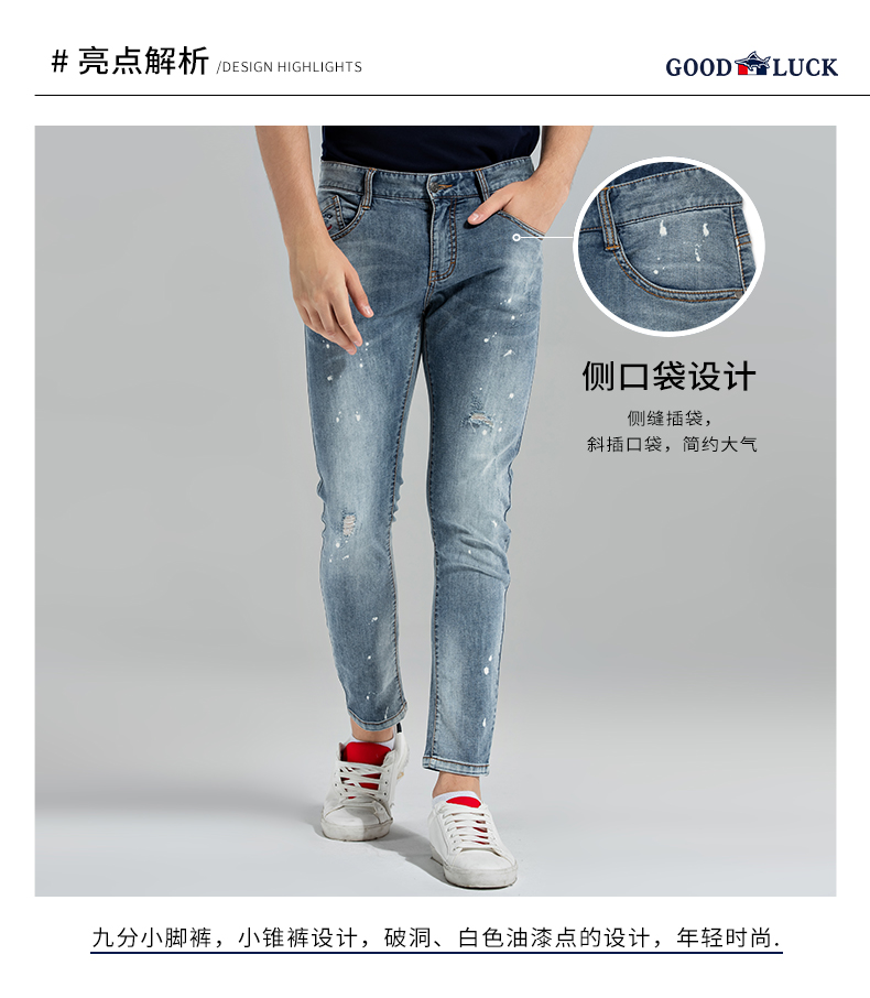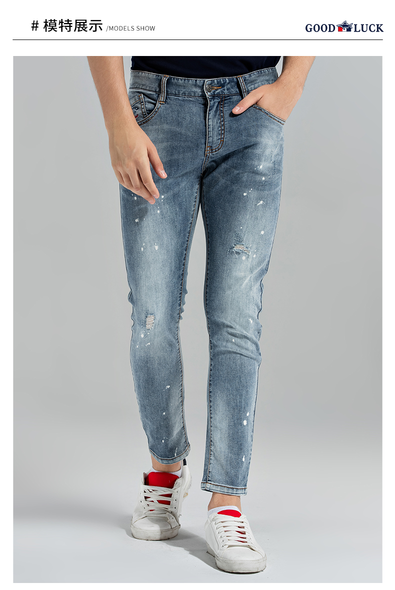 GOOD LUCK/德鲨棉质弹力破洞油漆点时尚小锥裤水洗牛仔裤FY17202-832