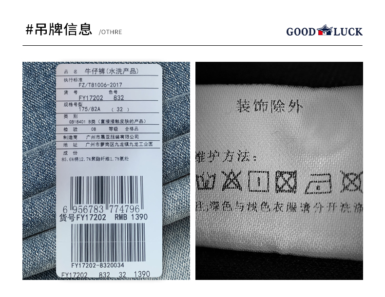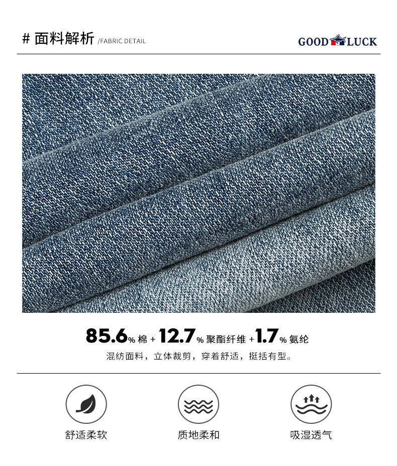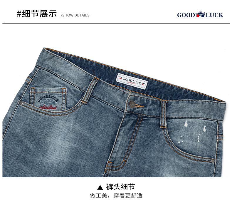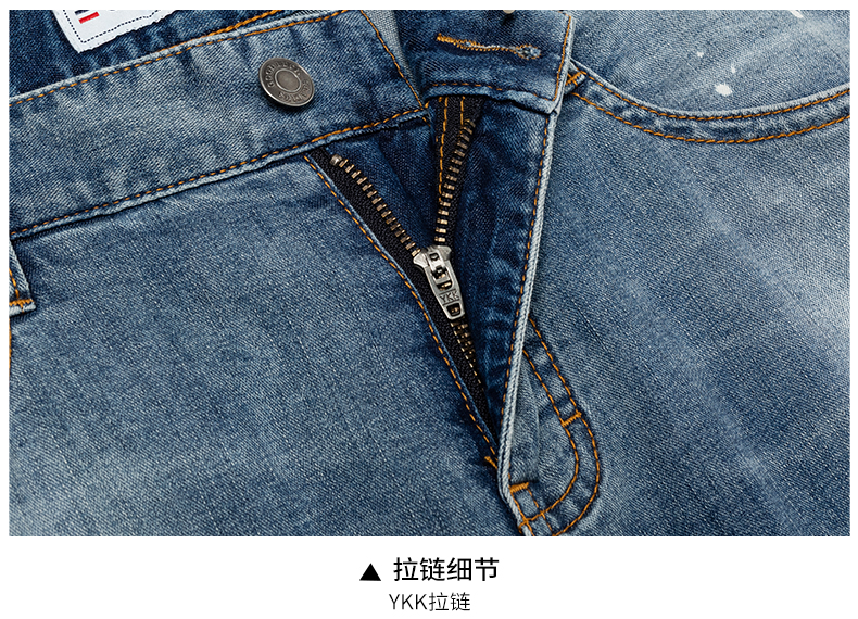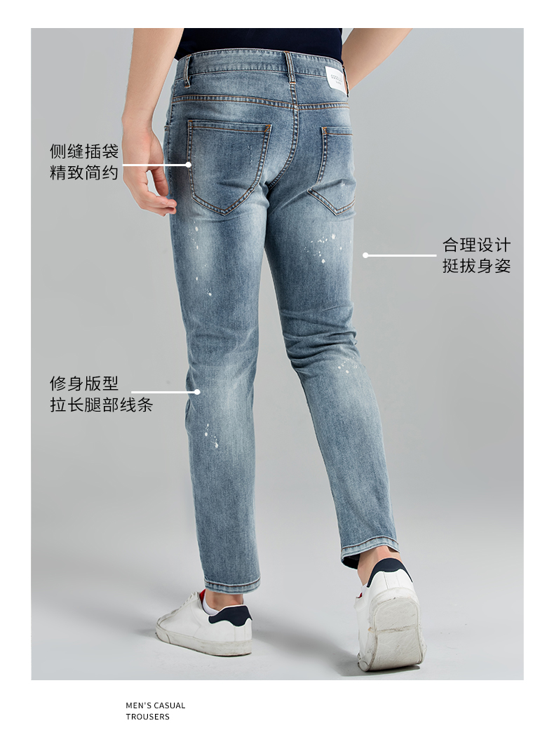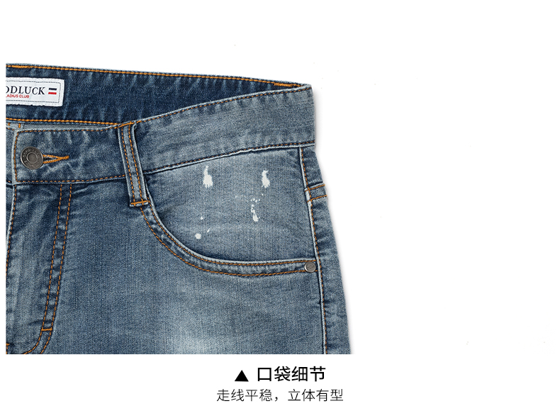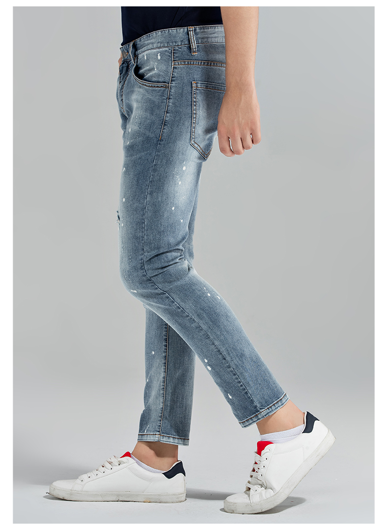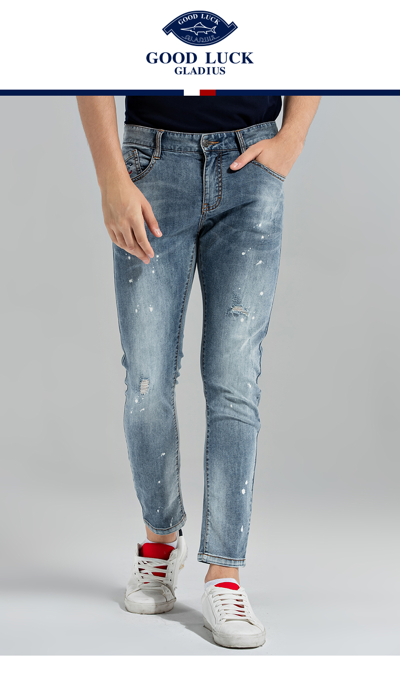 GOOD LUCK/德鲨棉质弹力破洞油漆点时尚小锥裤水洗牛仔裤FY17202-832