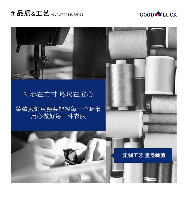 - GOOD LUCK GLADIUS品牌由“浙江德鲨服饰有限公司”引进中国市场,经过多年发展,凭借完善的终端形象,规范化的销售管理,迅速赢得消费者的认可,引领国内消费流行,是成功人士首选男装品牌。