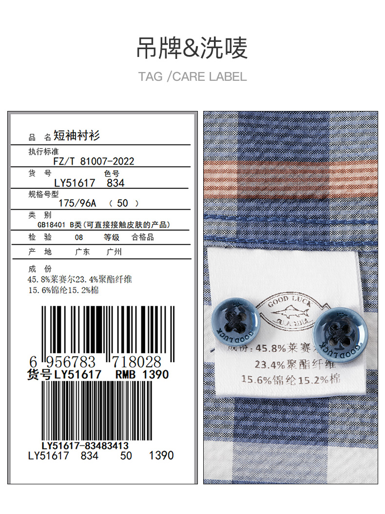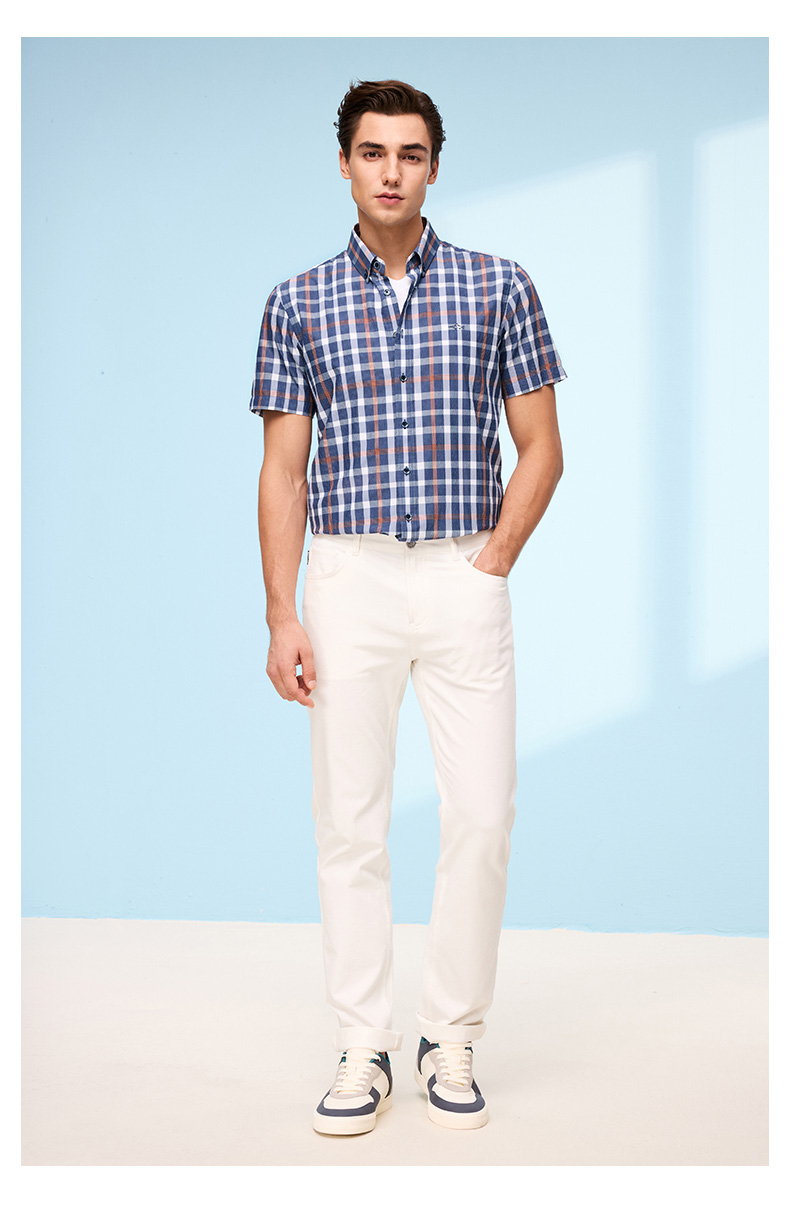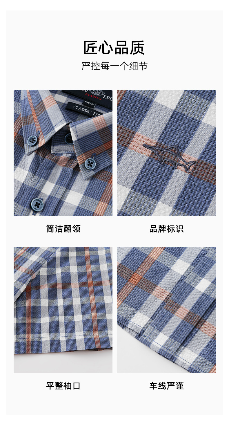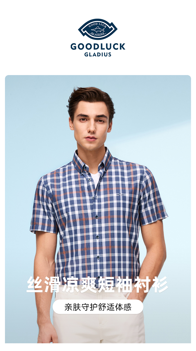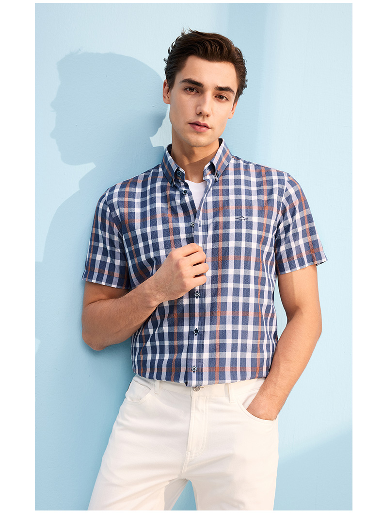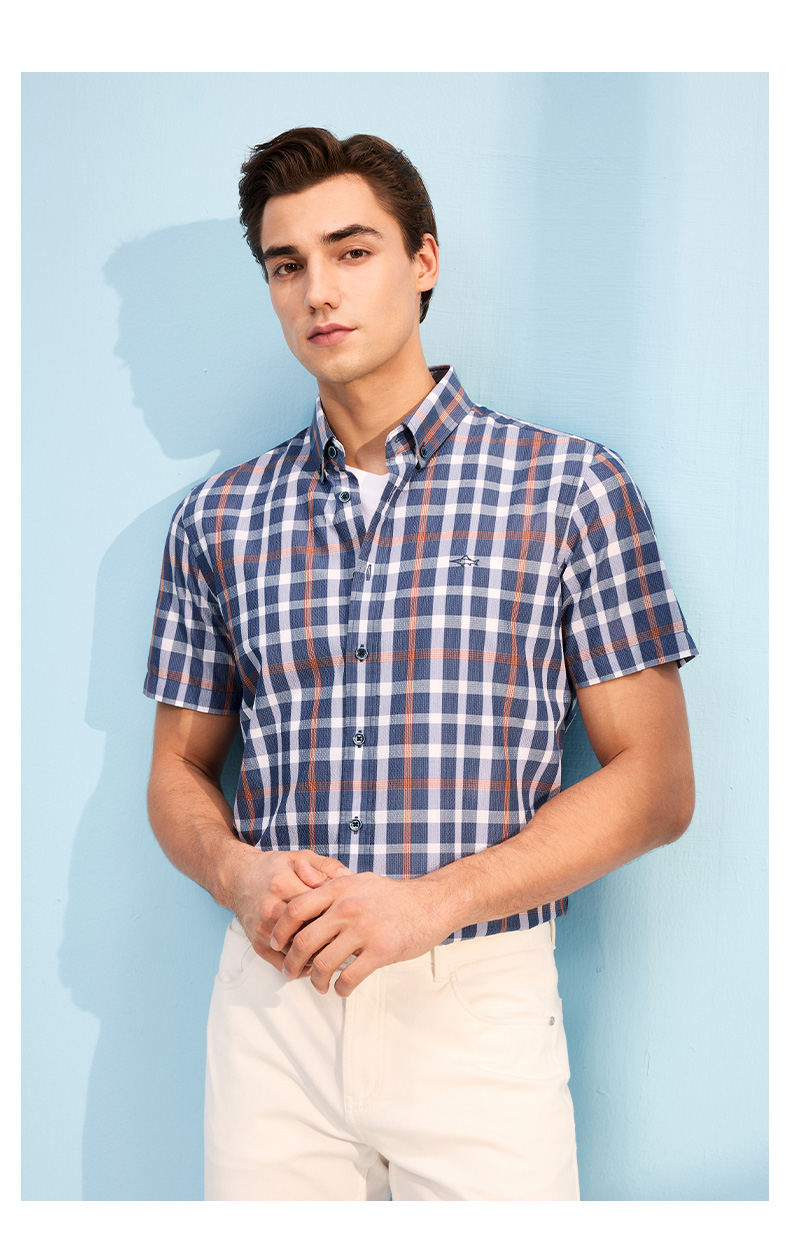 【莱赛尔】德鲨短袖格子衬衫男青年2026夏季新品休闲上衣打底衬衣