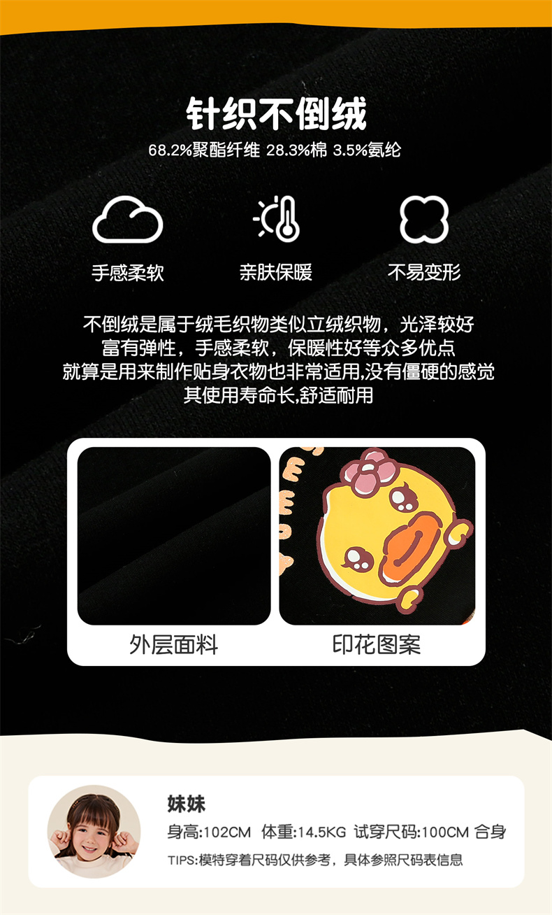 B.DUCK小黄鸭童装冬季打底长裤女童加绒 FF5458003