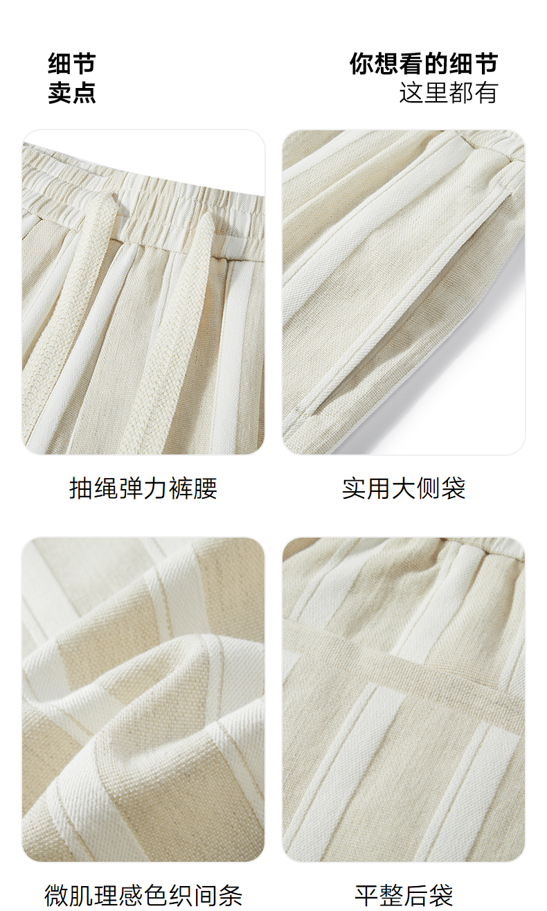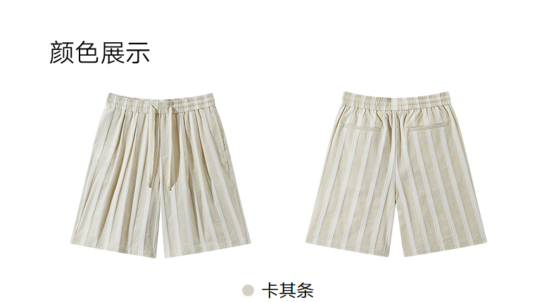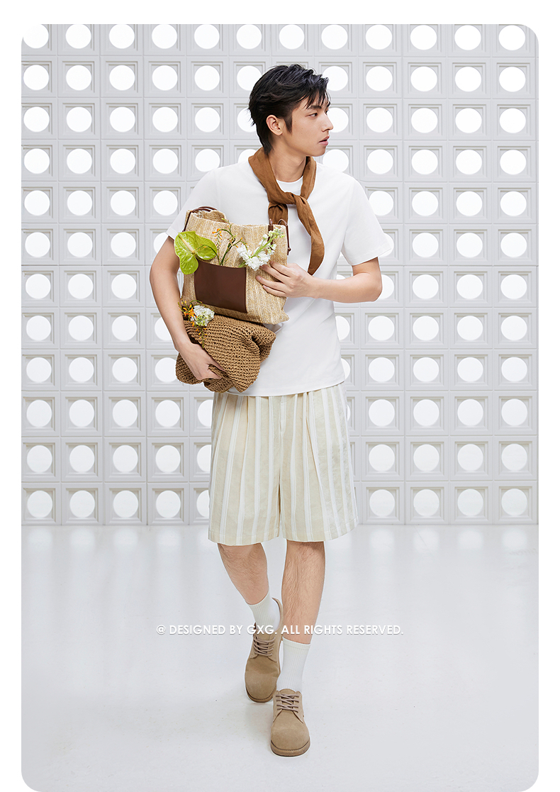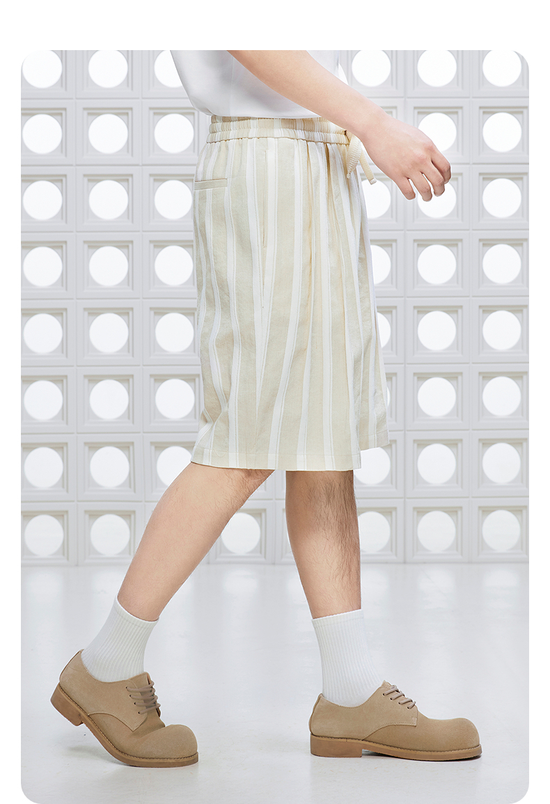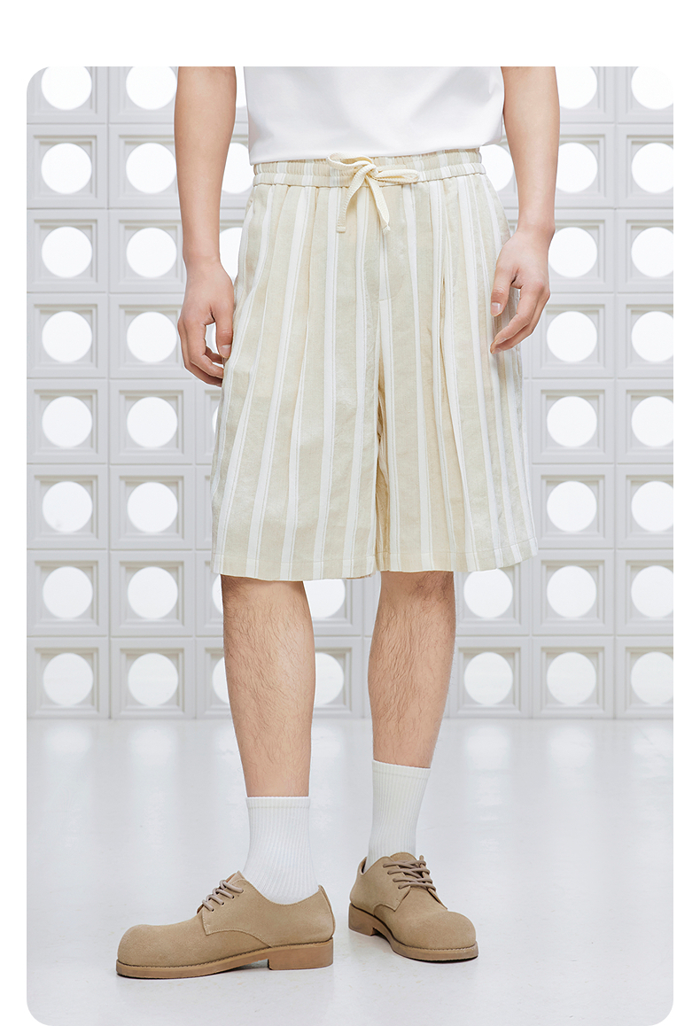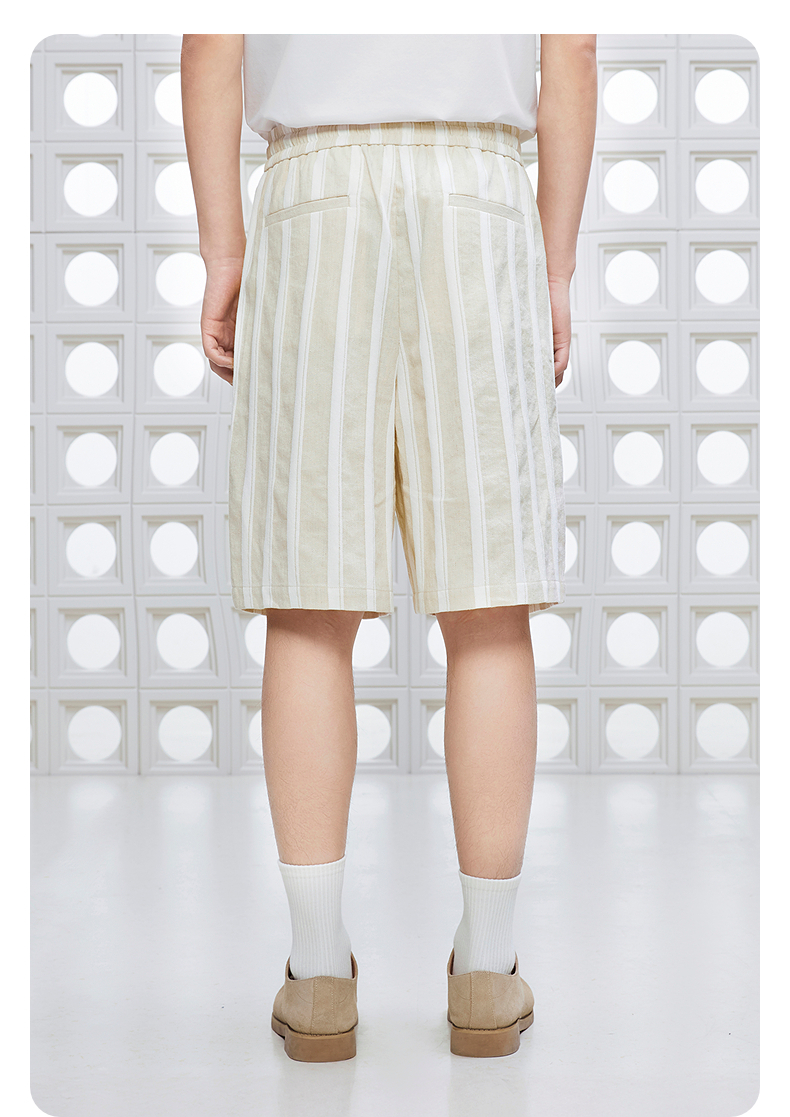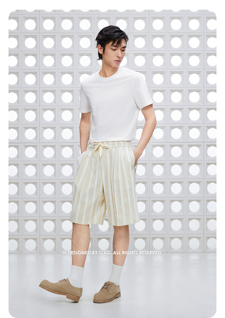 GXG男装 条纹设计休闲短裤微皱感通勤男裤宽松裤子 2025夏季热卖