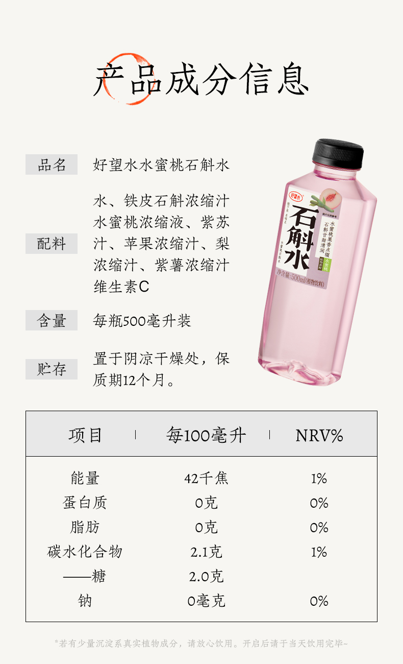 好望水 蜜桃石斛水/茉莉薏米水/柠萌薏米水PET装500ml*15 配料干净 72小时发货