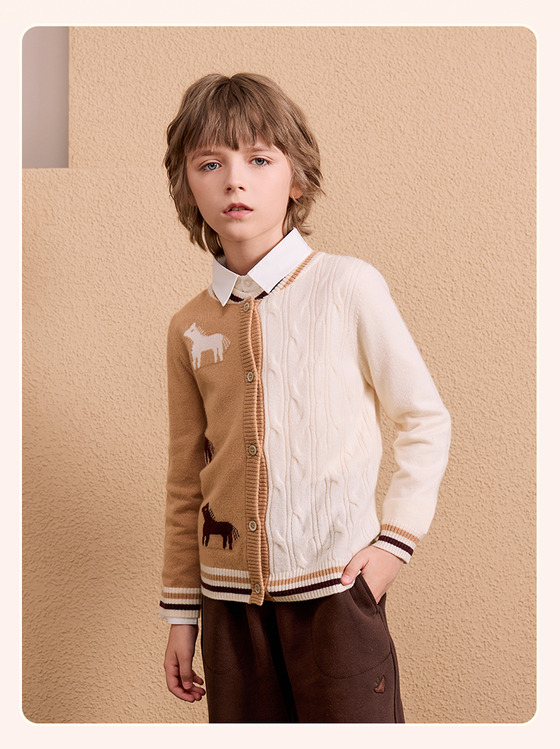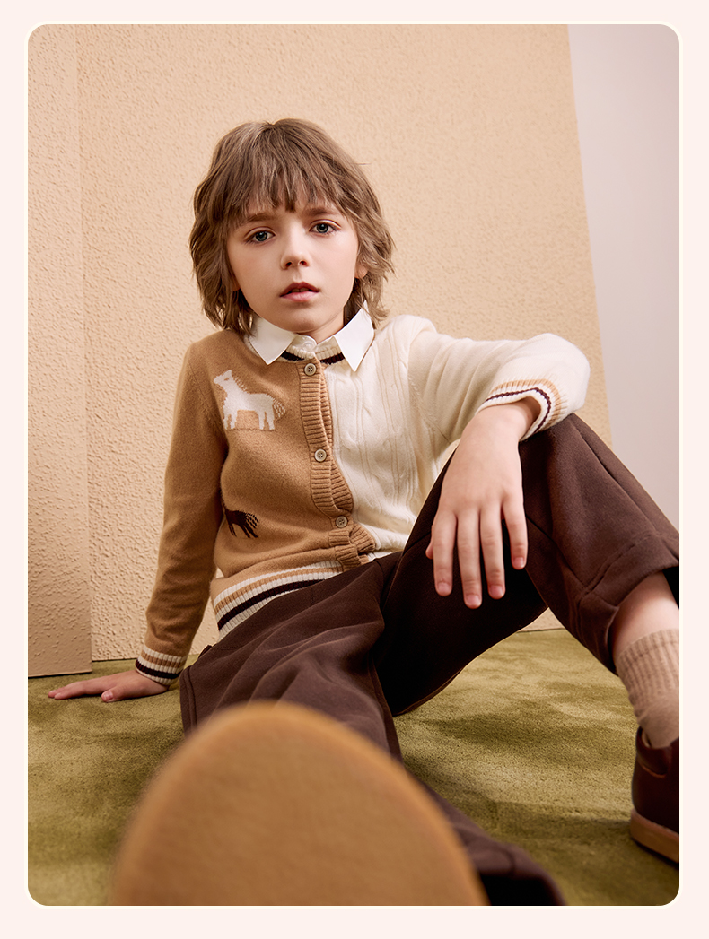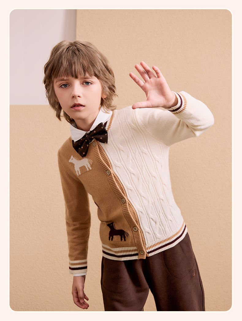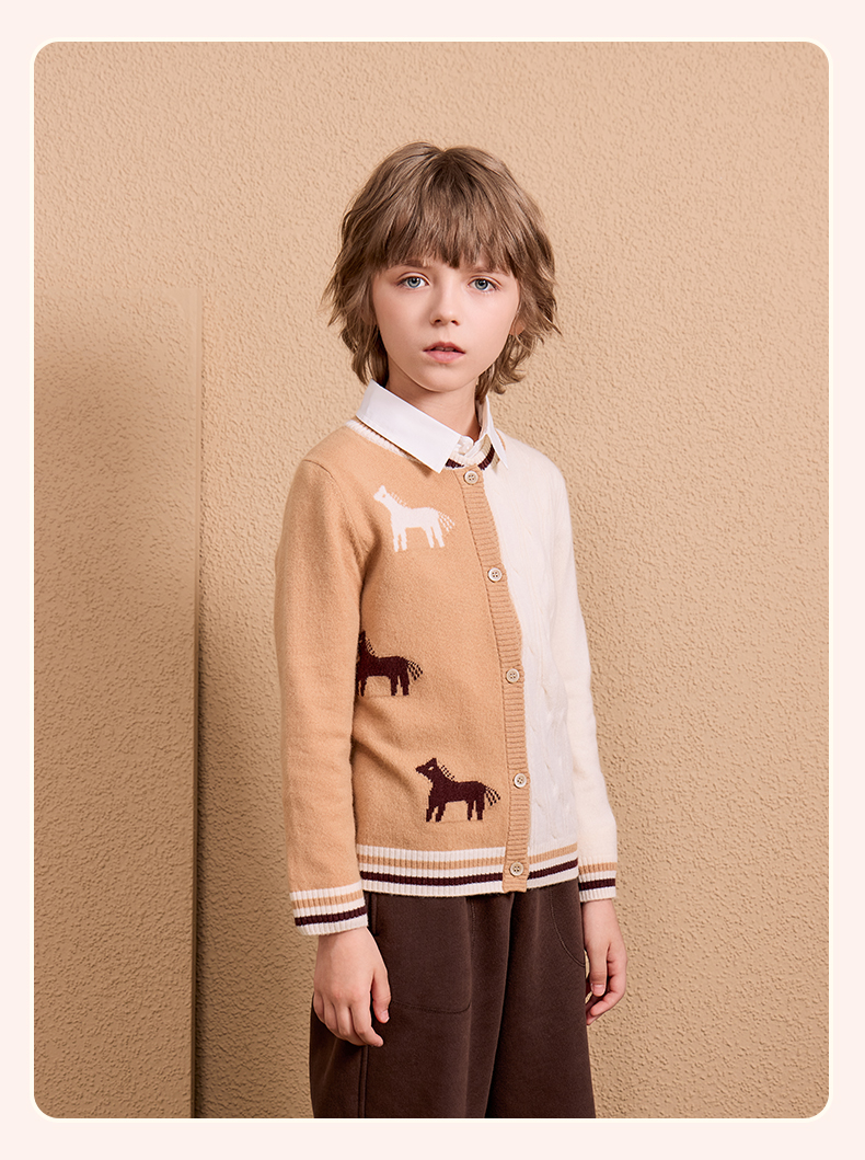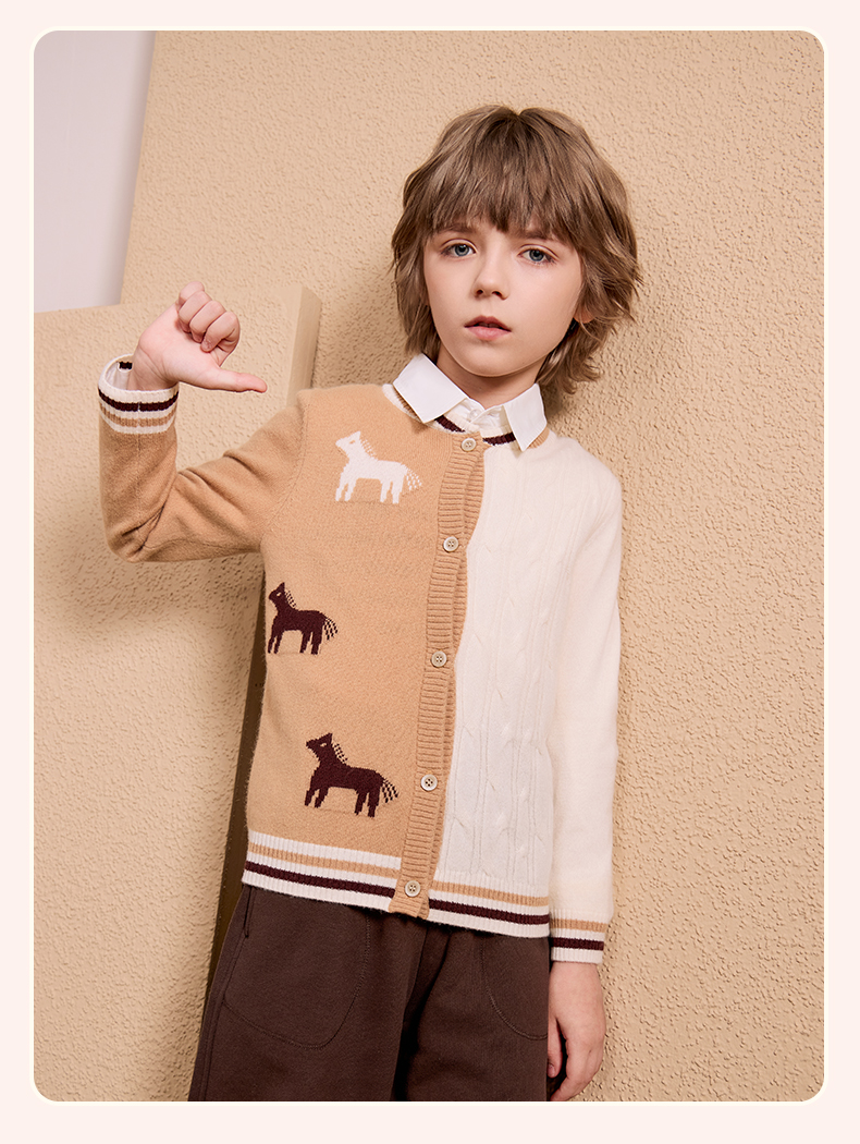 mettekids儿童100%羊绒衫2024秋季新款男童学院风毛衣针织开衫