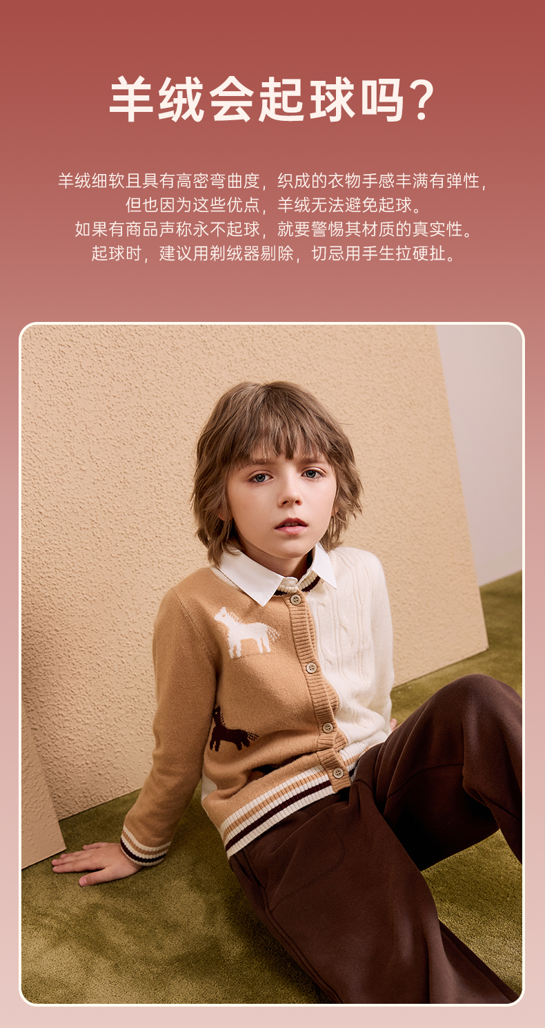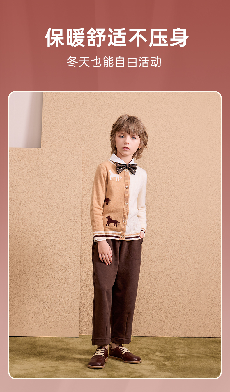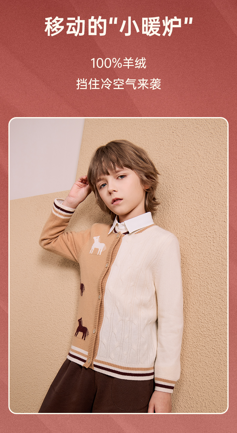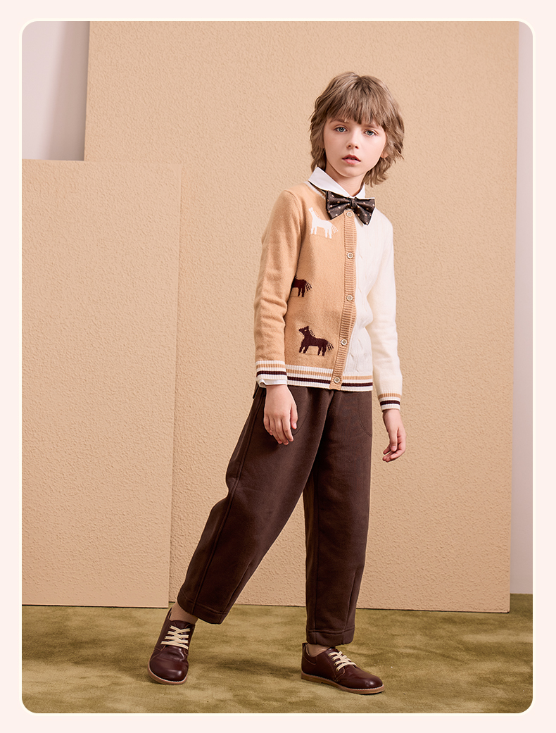 mettekids儿童100%羊绒衫2024秋季新款男童学院风毛衣针织开衫