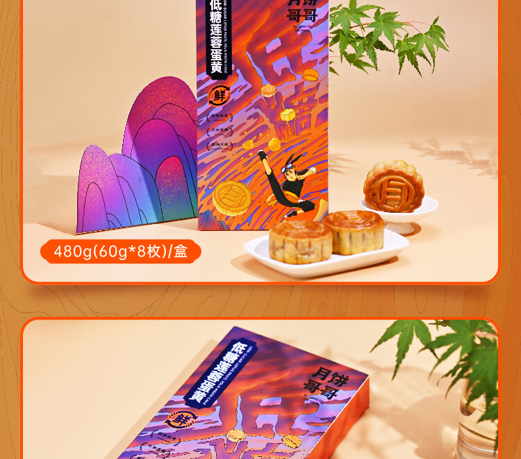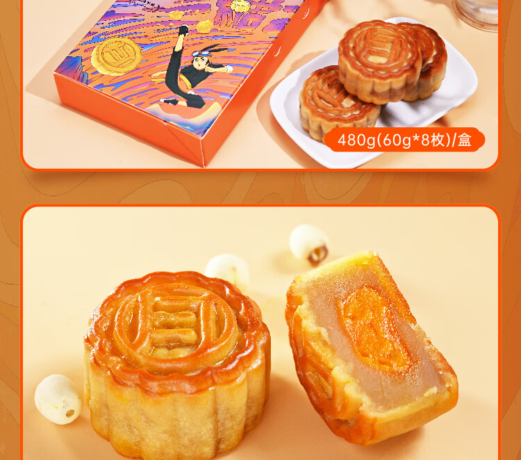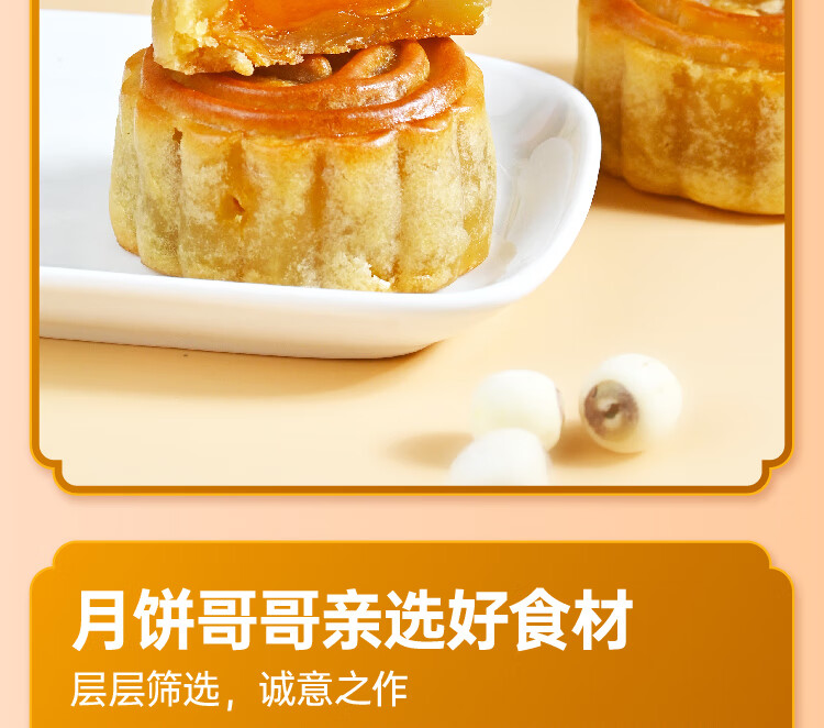 2025年中秋月饼哥哥 低糖莲蓉蛋黄月饼(配手提袋)60g*8个/盒手工月饼保质期10-15天