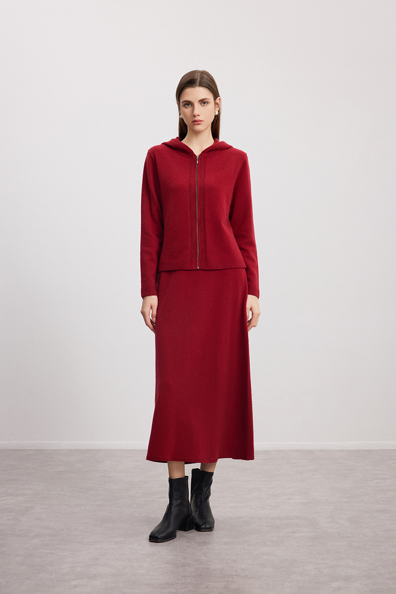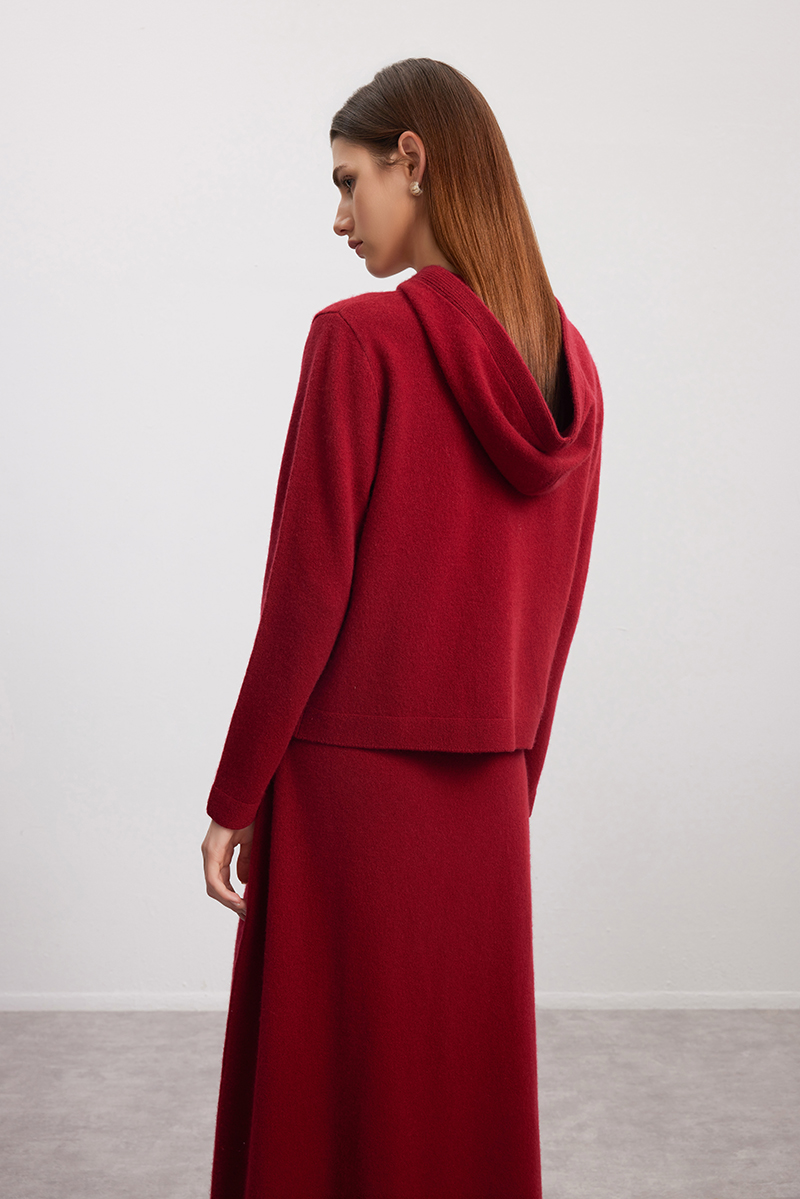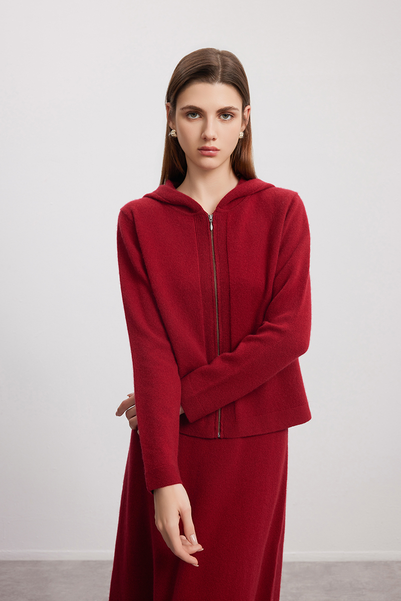 【连帽羊绒开衫】24年秋冬新品女士100%山羊绒时尚百搭针织小外套
