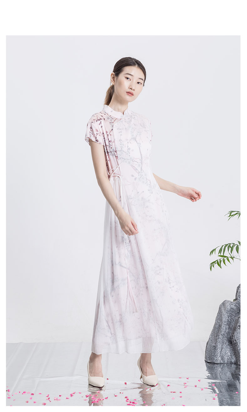 吉祥衣家新中式国风夏新款裙子气质修身显瘦女装桃源连衣裙
