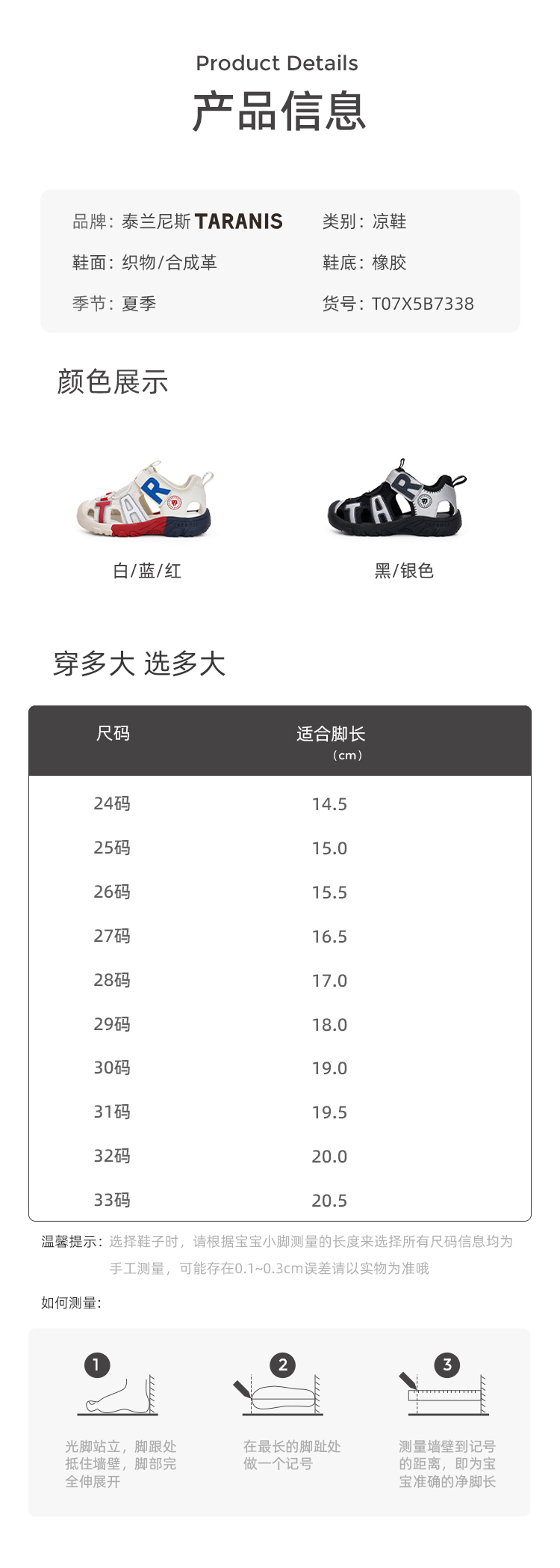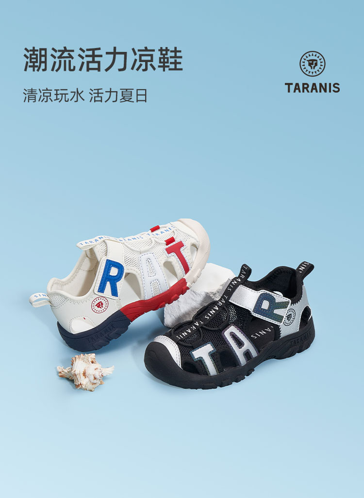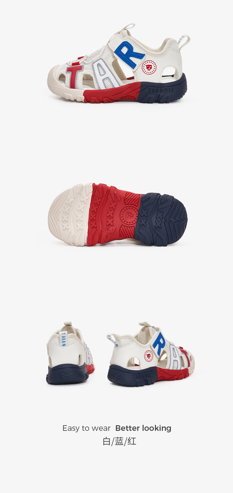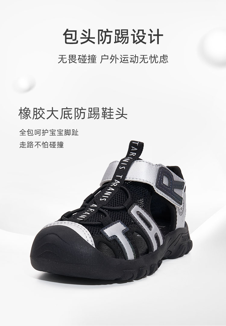 泰兰尼斯夏包头童鞋个性撞色儿童鞋子休闲运动风网布凉鞋T07X5B7338