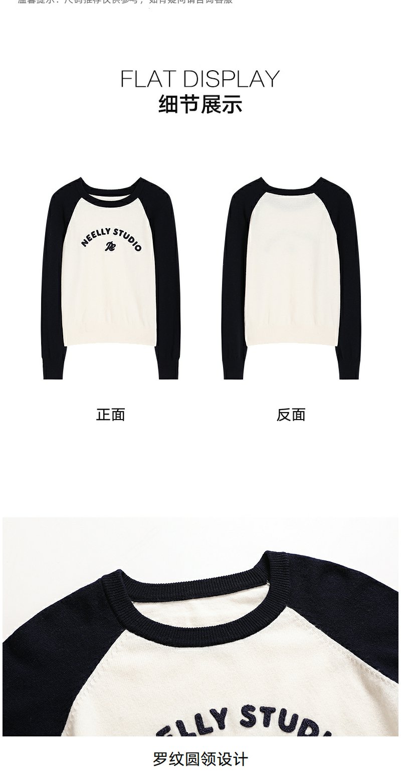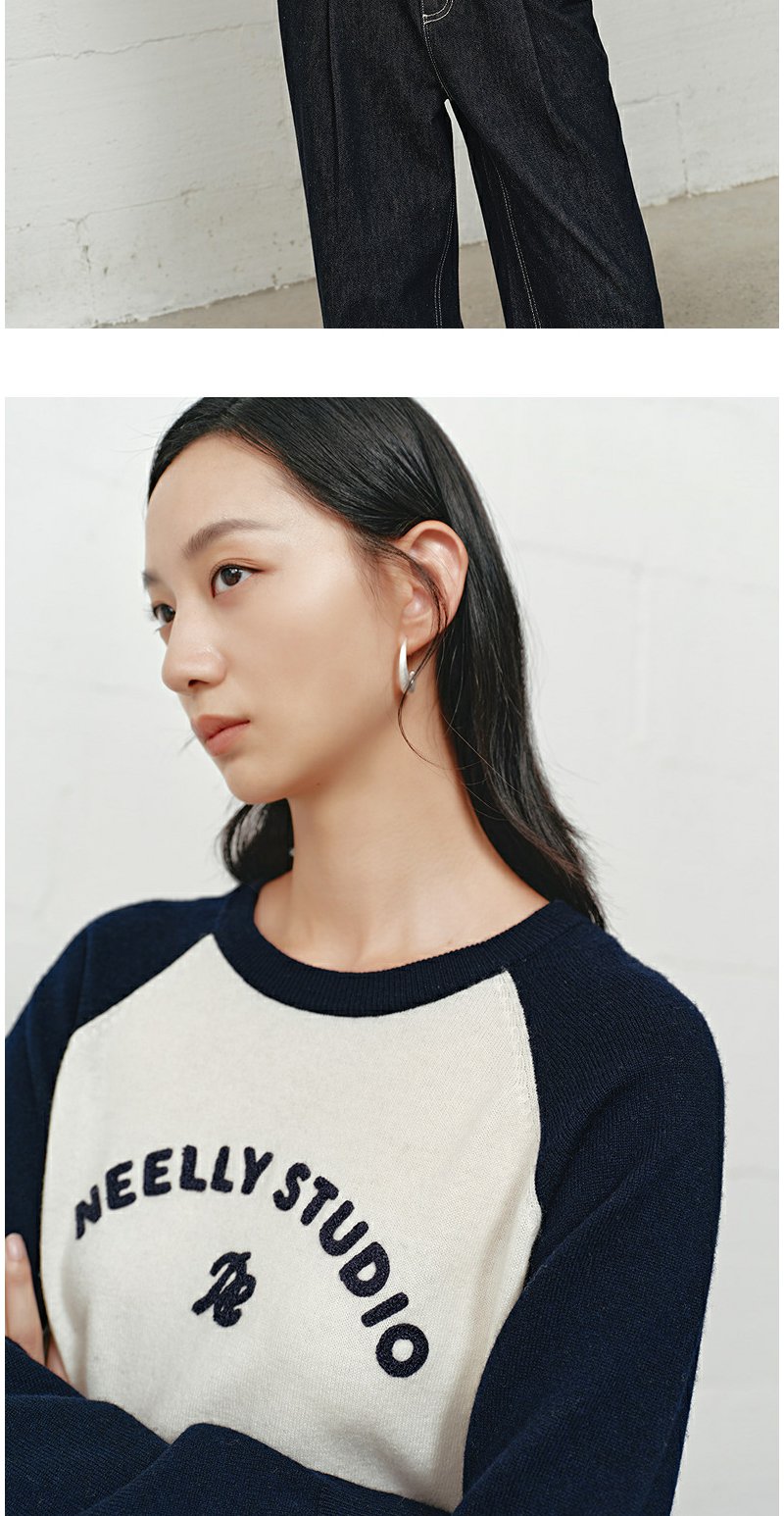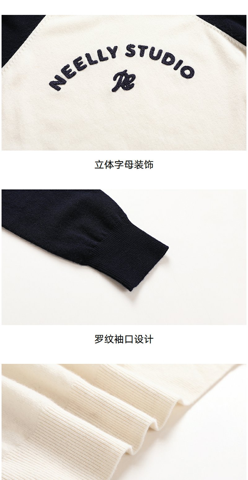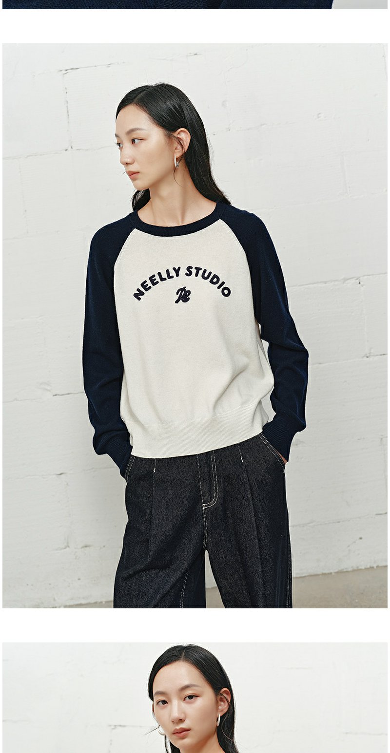 NEELLY纳俪商场同款冬季新款时尚字母插肩袖针织衫女撞色复古上衣N25101A01003